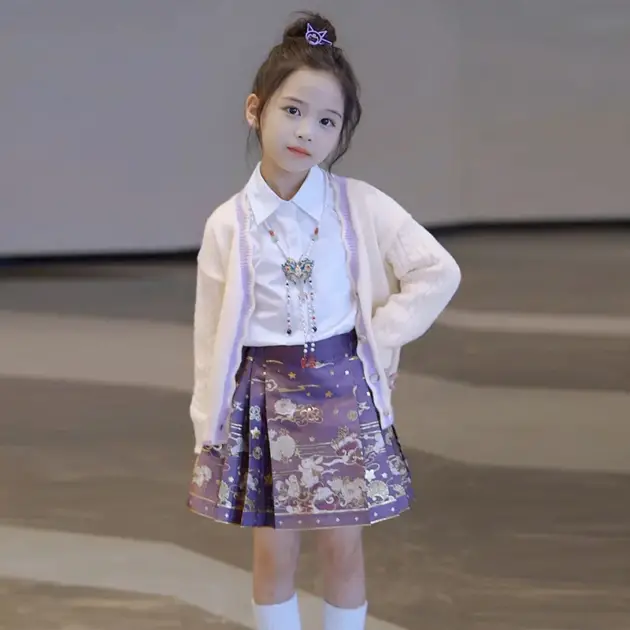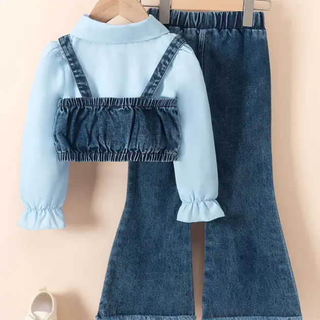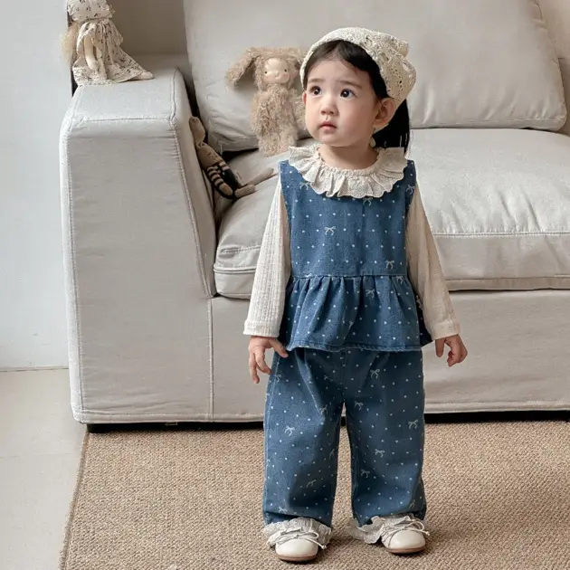 Girls’ Suit Spring Clothes New Children’s Denim Vest Pants Bottoming Shirt Spring and Autumn Clothes