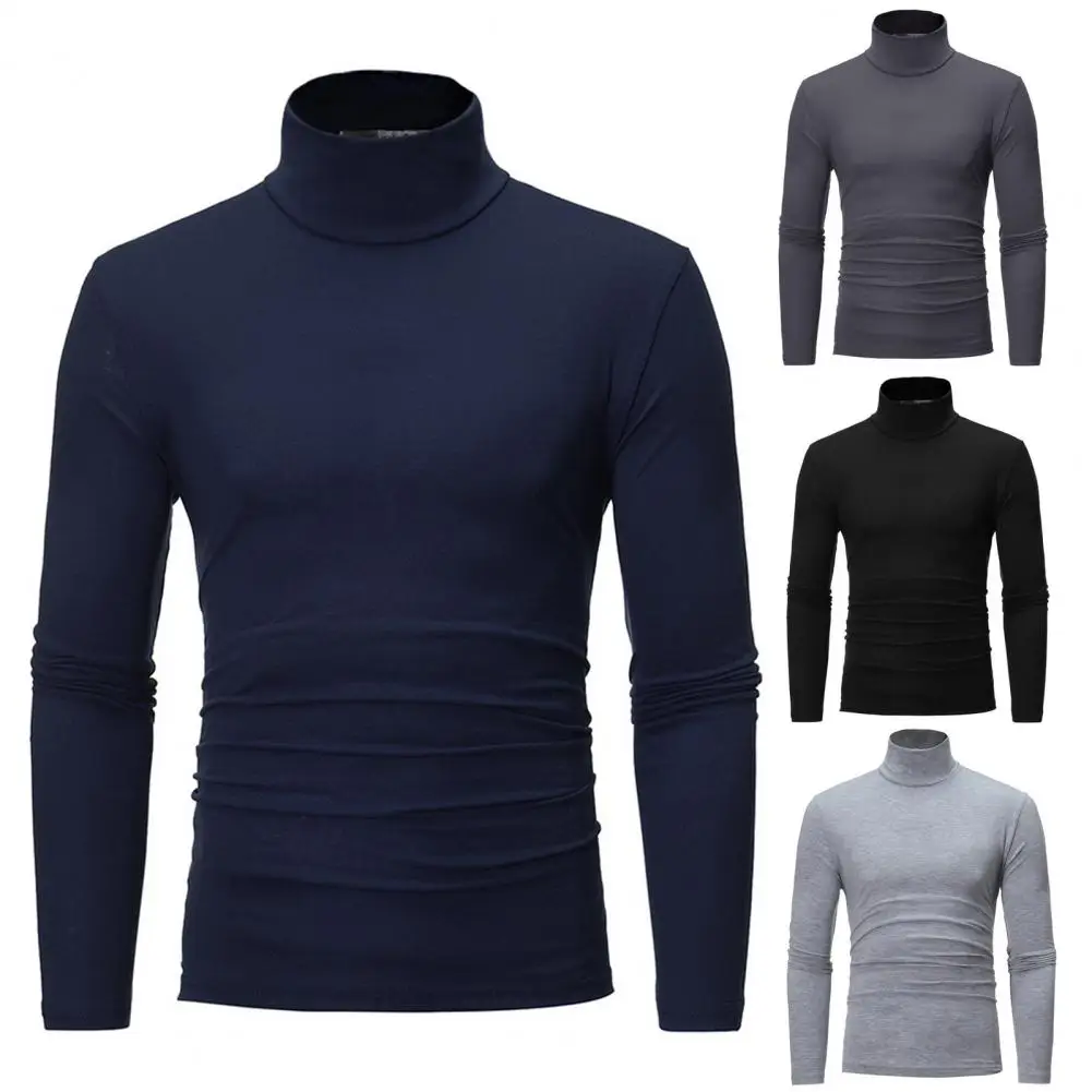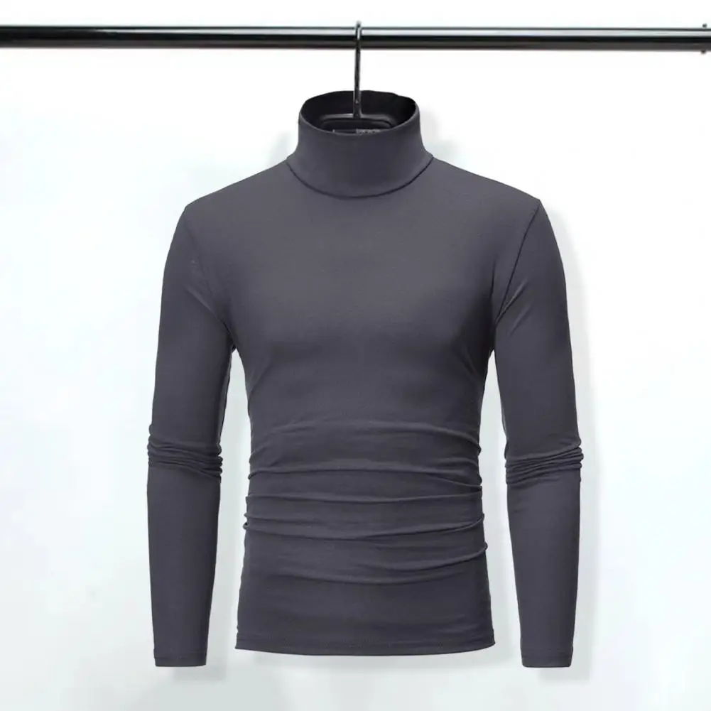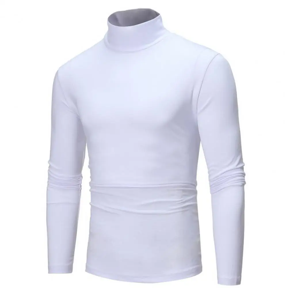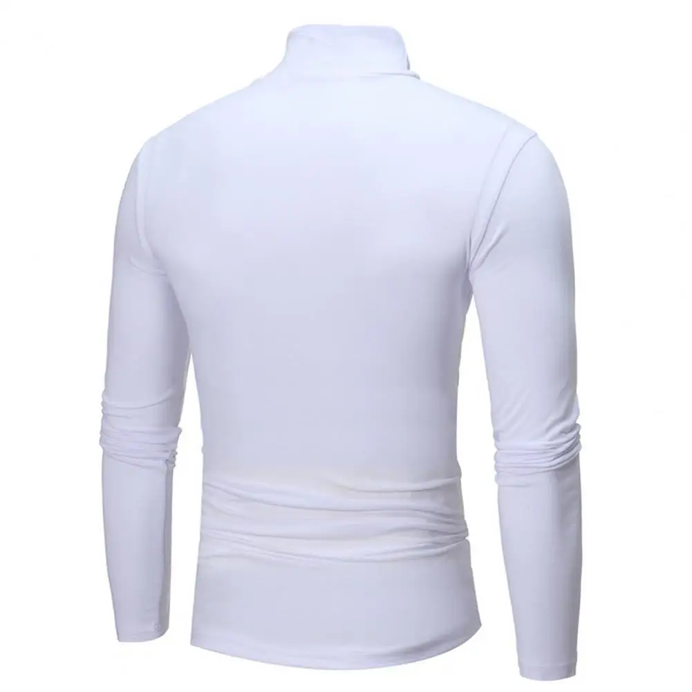 Men Autumn Winter Slim Fit Bottoming T-shirt Turtleneck Long Sleeve Solid Color Elastic Thin Pullover Tops Streetwear