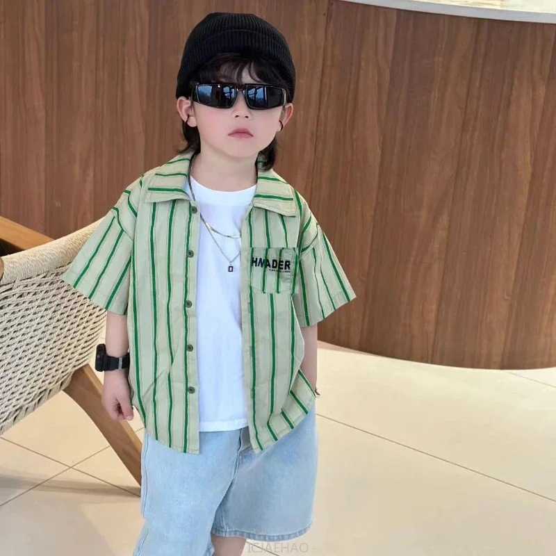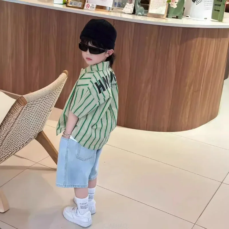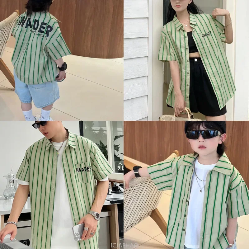 2025 Family Vacation Parent-child Matching Equal Clothing Striped Shirts Father Mother and Daughter Son Beach Holiday Clothes