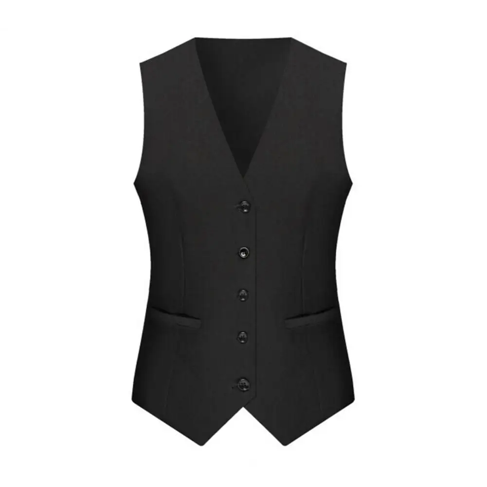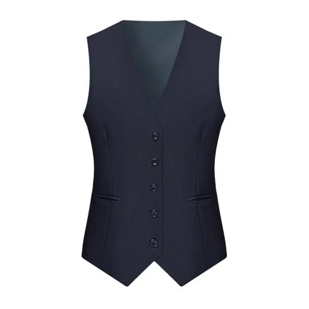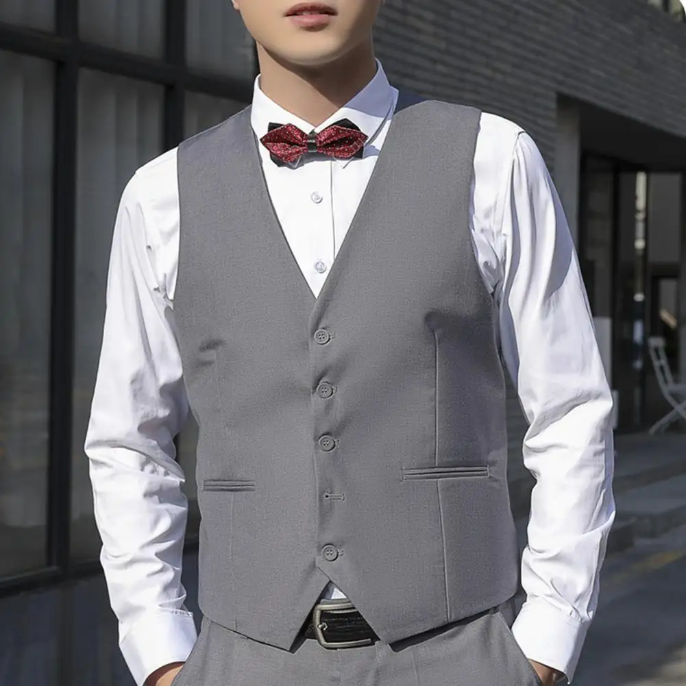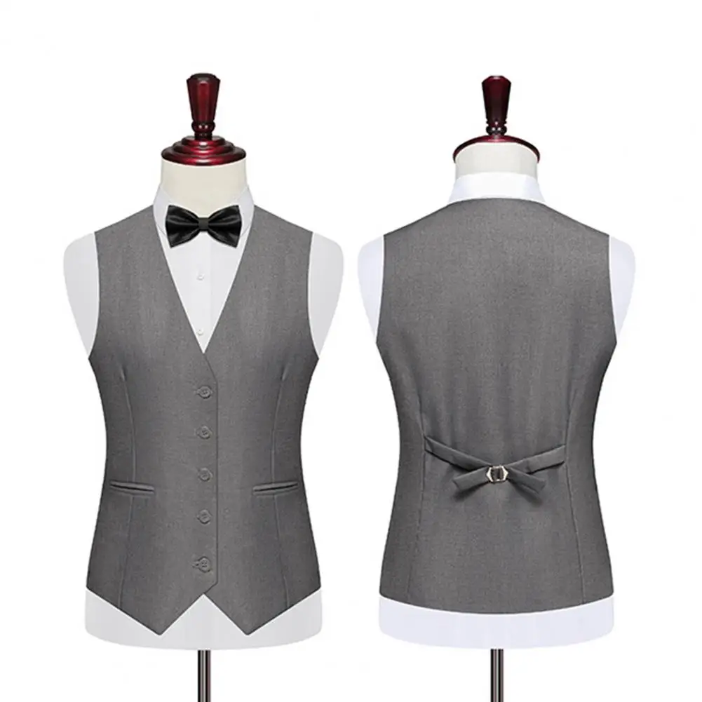 Men Suit Waistcoat V-neck Sleeveless Single Breasted Suit Vest with Pockets Solid Color Ergonomic Tailoring Waistcoat