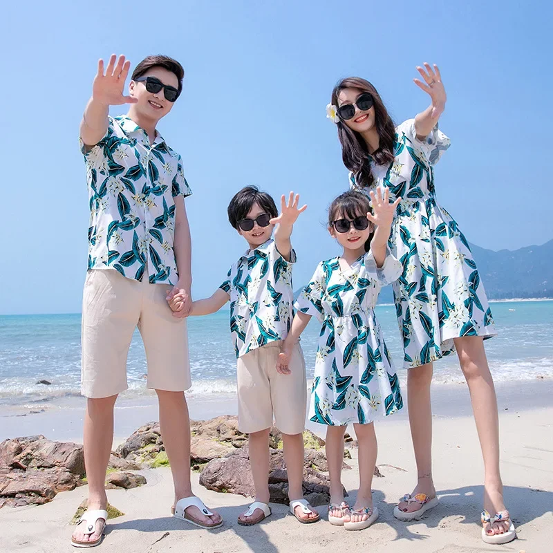 Beach Family Matching Outfits Long Dress and Shirt Set for Parents Vacations Family Photos Costumes and Kids Perfect for Summer