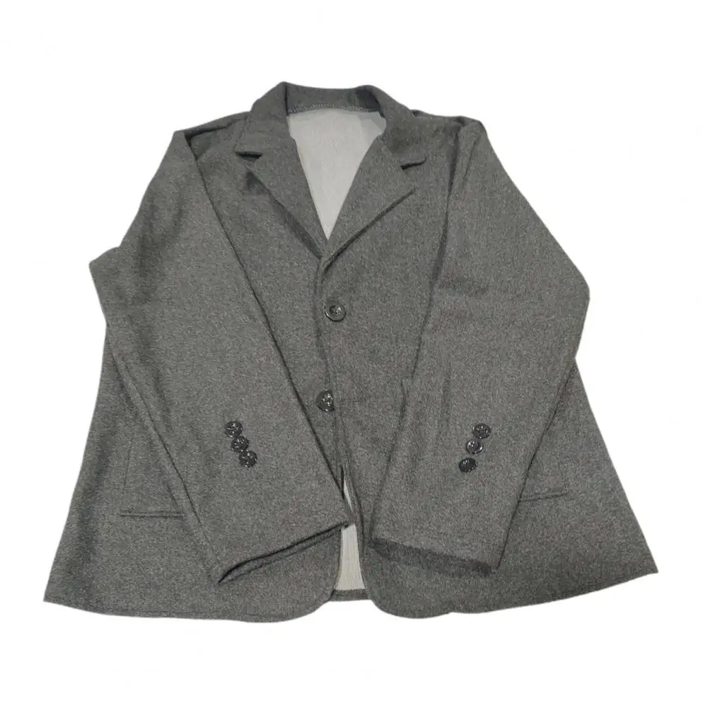 This tailored suit jacket features a suit lapel, long sleeves, and a two-button placket, adorned with button decorations on the sleeves for a touch of refinement and personalization.