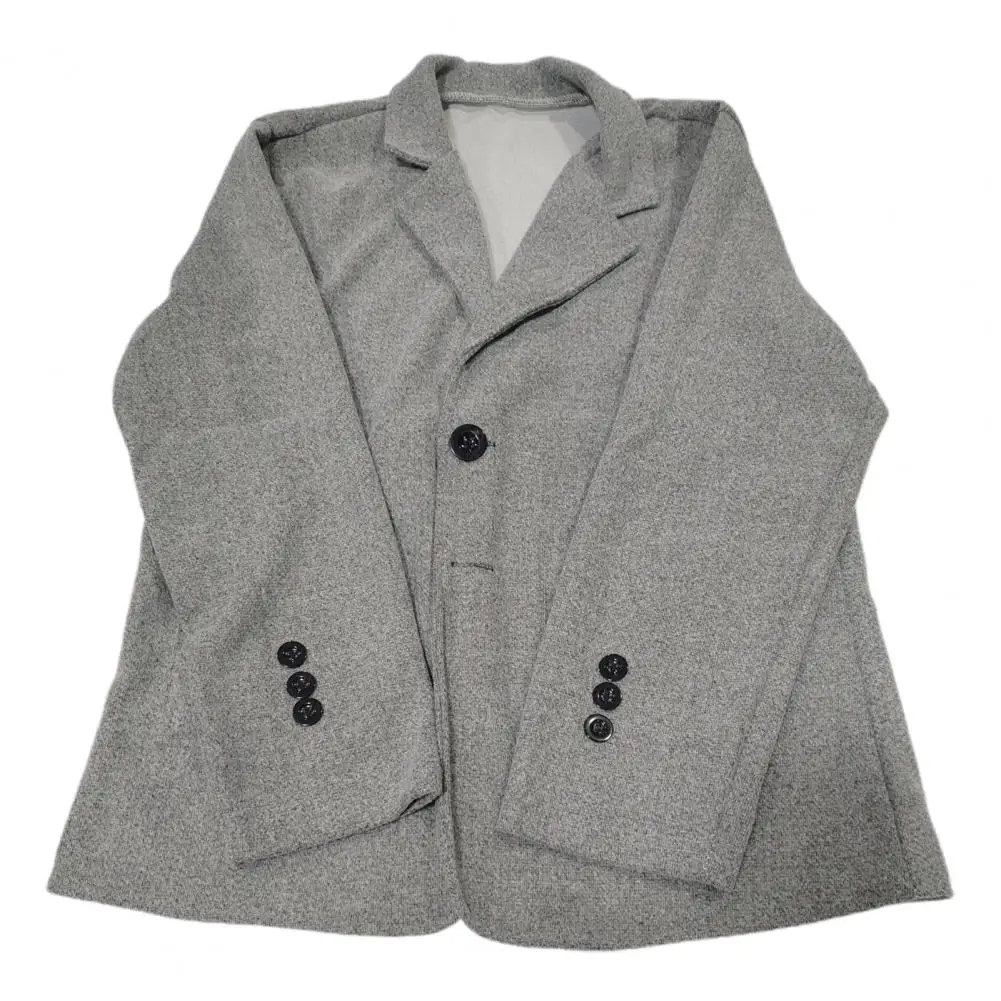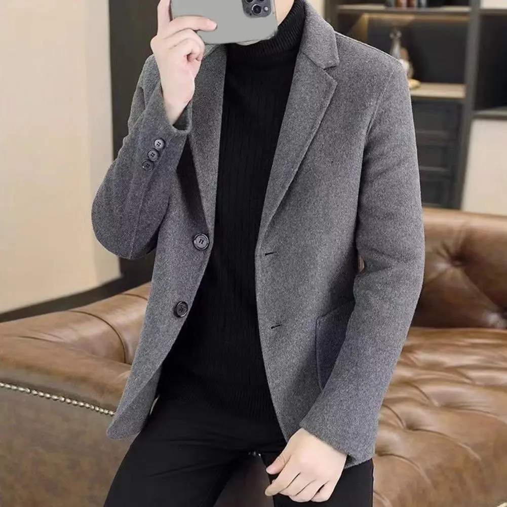 Wool Suit Coat Lapel Long Sleeve Single Breasted Two-Button Jacket with Pockets Solid Color Suit Jacket