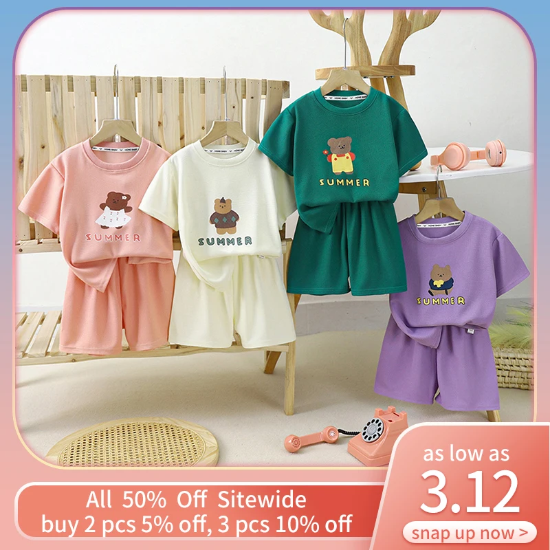 HomeKidsCartoon Bear Short Sleeve Pant Sets Summer Baby Outfits Children Fashion Tee Soild Color Shorts Thin Cotton Clothes TracksuitsCartoon Bear Short Sleeve Pant Sets Summer Baby Outfits Children Fashion Tee Soild Color Shorts Thin Cotton Clothes Tracksuits$18.85 Buy Now SKU: 3256805293154098 Categories: All Products, Kids Product ID: 31210 Description Reviews (0) Additional information Description Oh Sweety Baby Store Material: cotton Package includes: 1set Notice: The following is for reference only, please refer to the size chart for specific sizes 80 yards fit 1-2 years old 90 yards fit 2-3 years old 100 yards fit 3-4 years old 110 yards fit 4-5 years old 120 yards fit 5-6 years old
