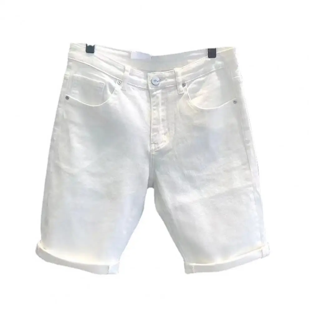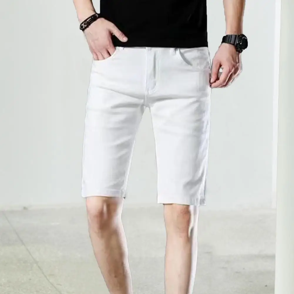 Slim denim shorts adopts solid color design, it is very casual and simple, and easy to match with clothes. It looks great if matched with T-shirts, shirts, vest, casual top, etc.