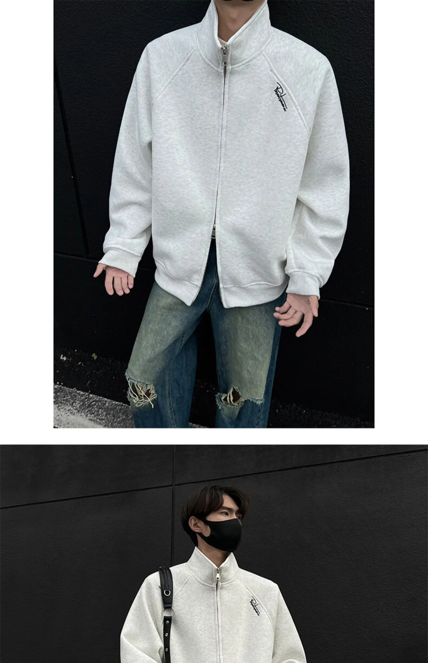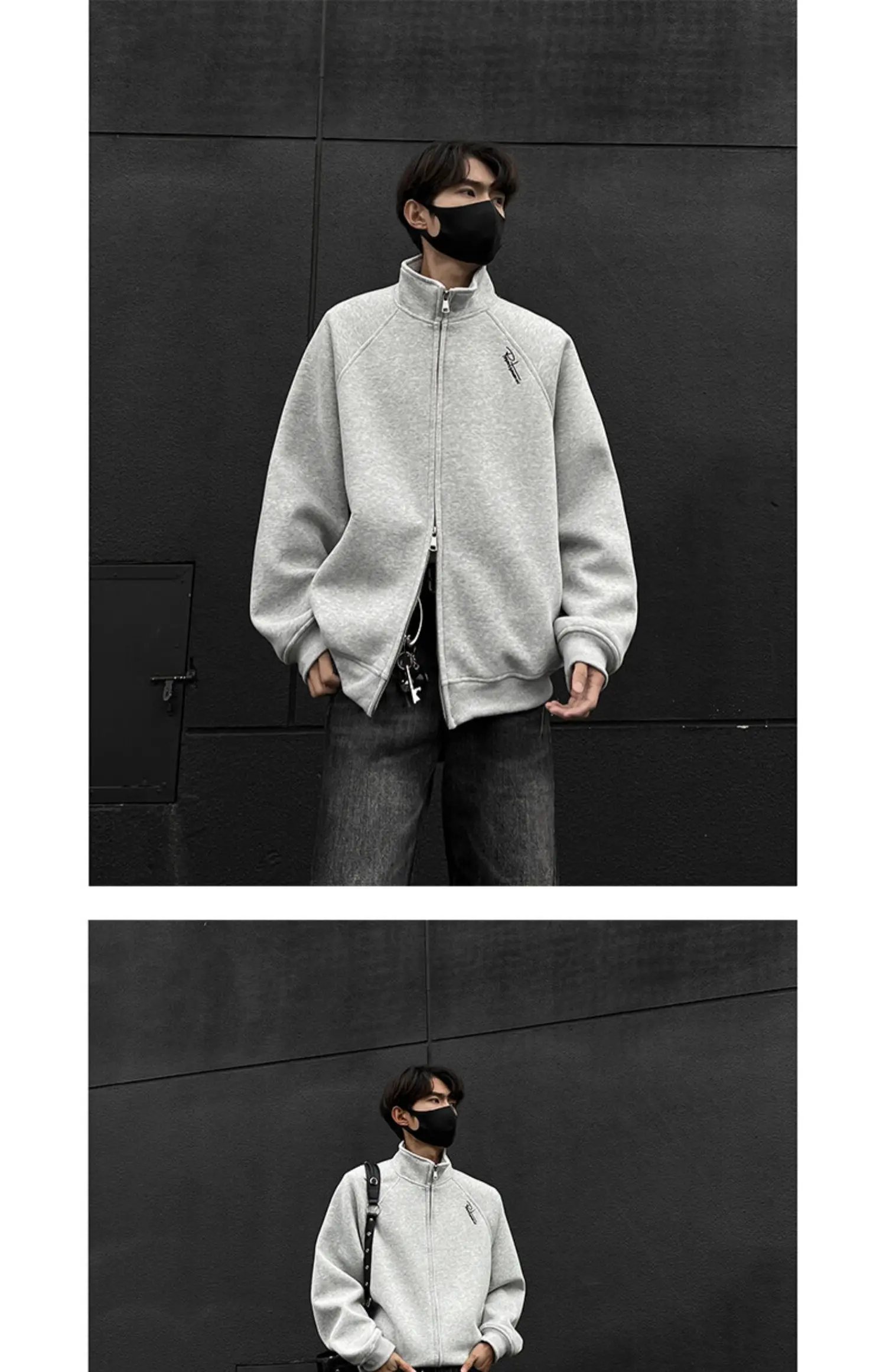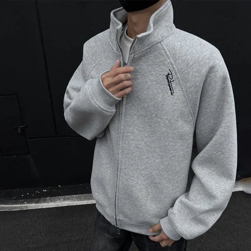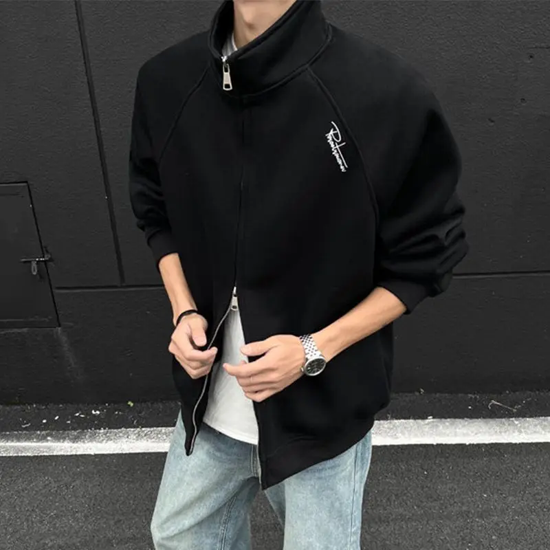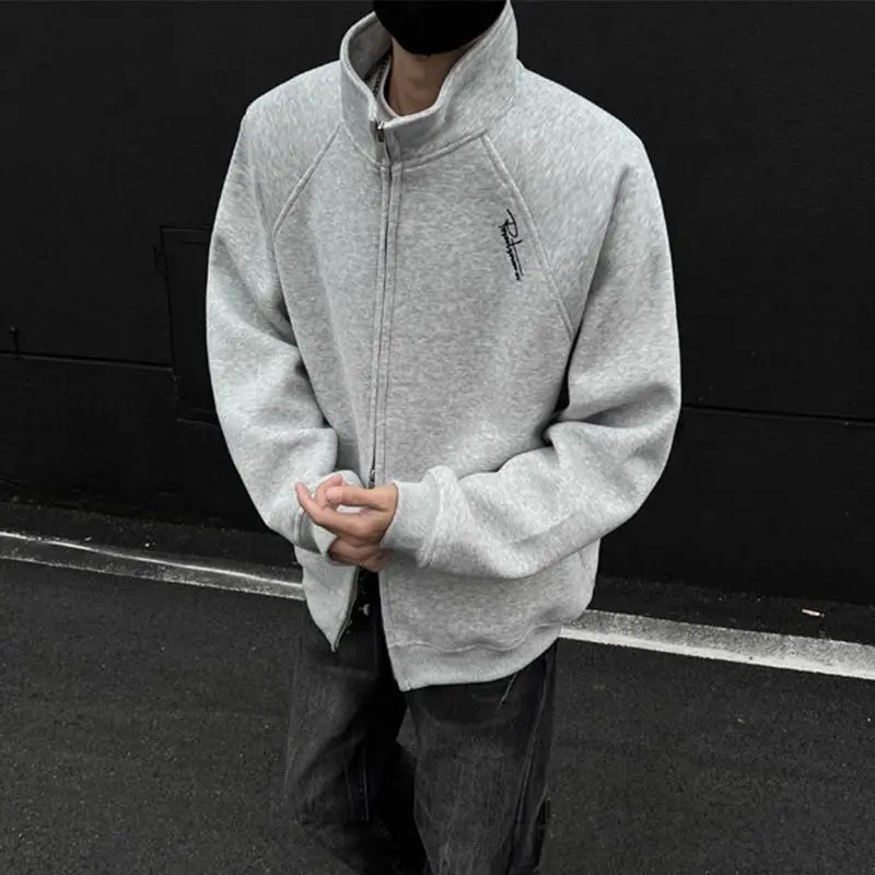 The cleanfit double zipper cardigan jacket features a loose fit design, offering comfort and style for the autumn and winter seasons.