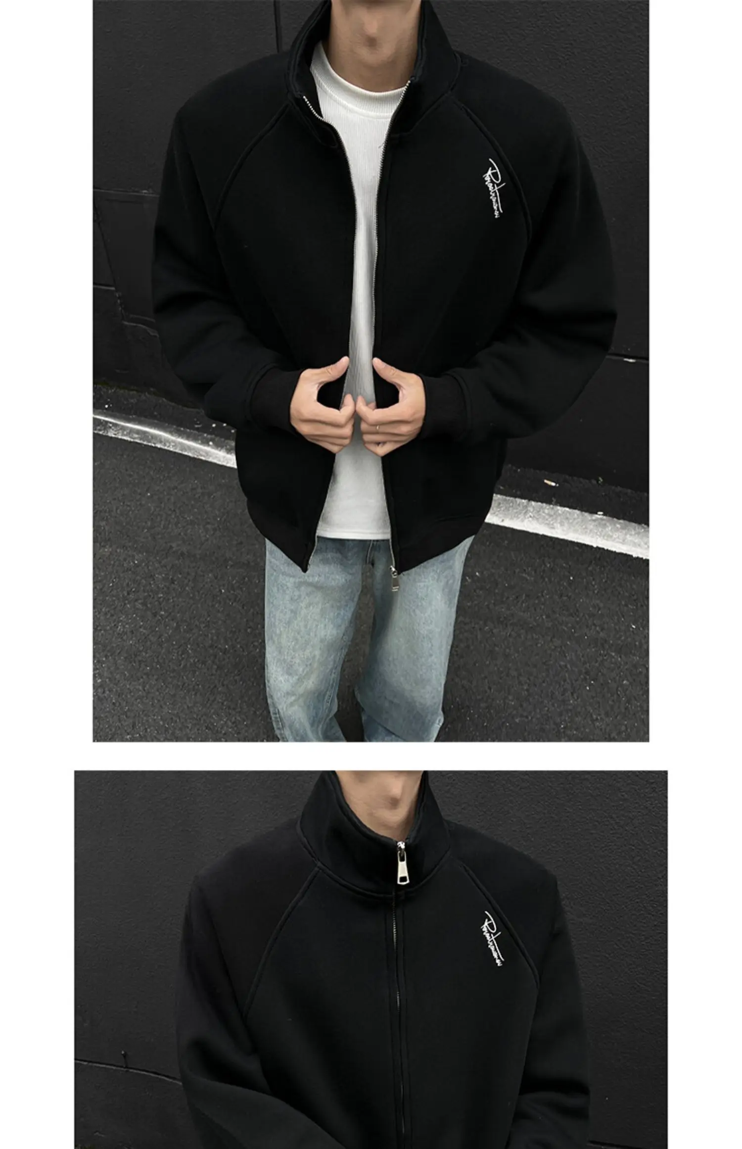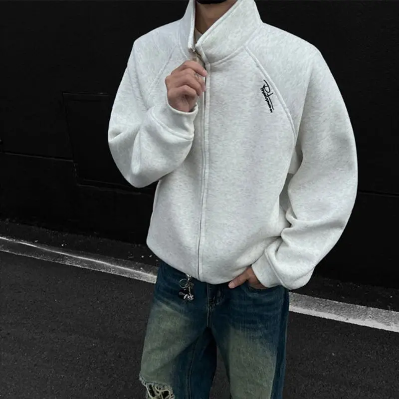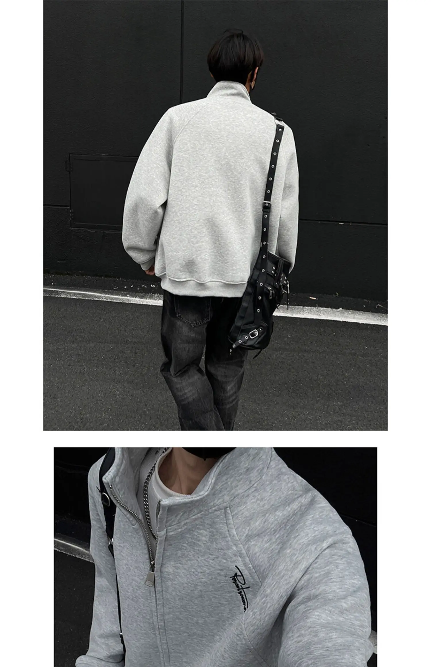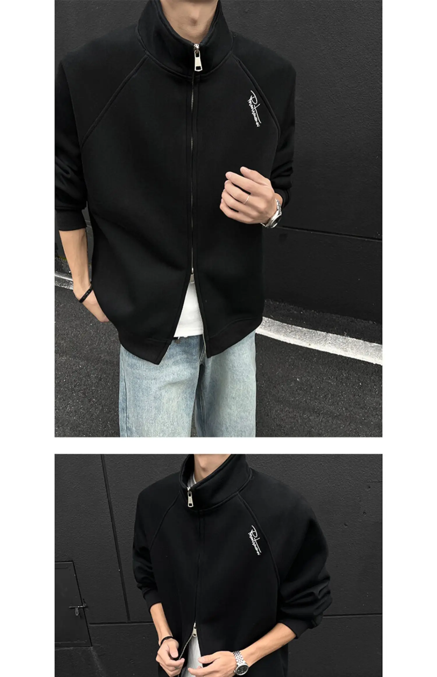 The cleanfit double zipper cardigan jacket features a loose fit design, offering comfort and style for the autumn and winter seasons.