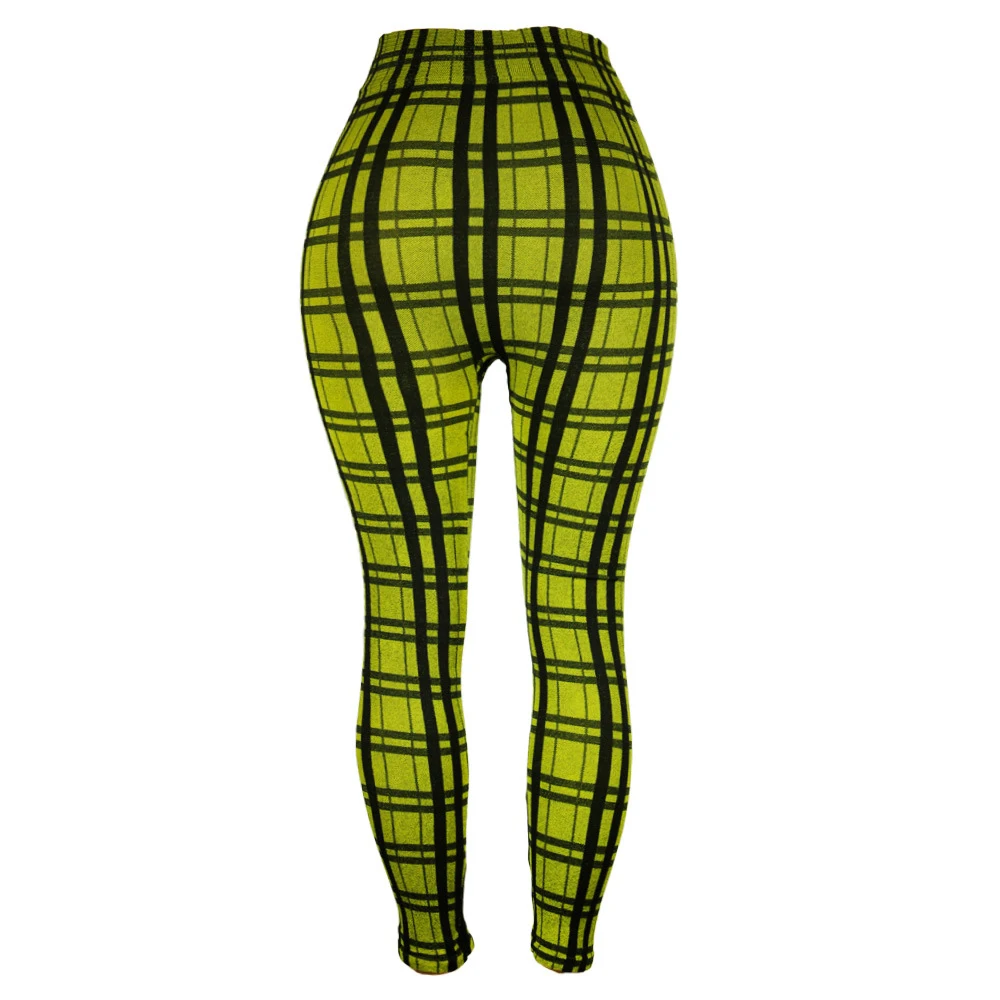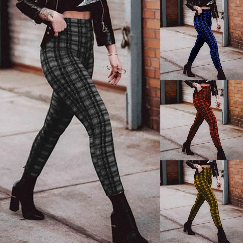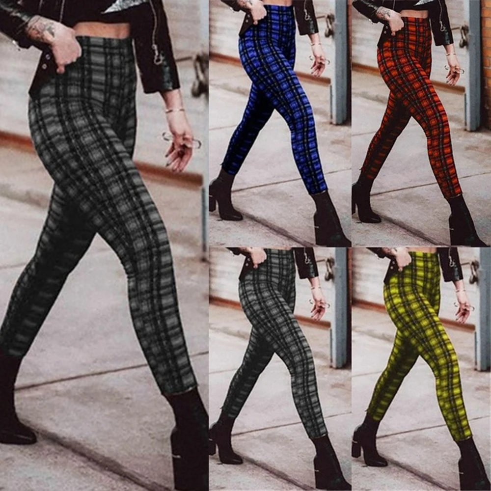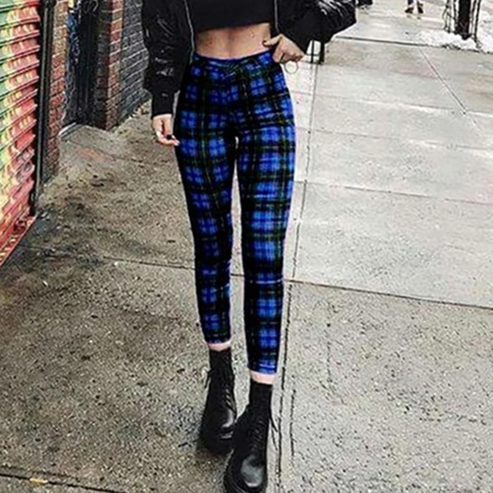 * Item Description:️Womens Check Plaid High Waist Leggings Tight Slim Elastic Pants Trousers