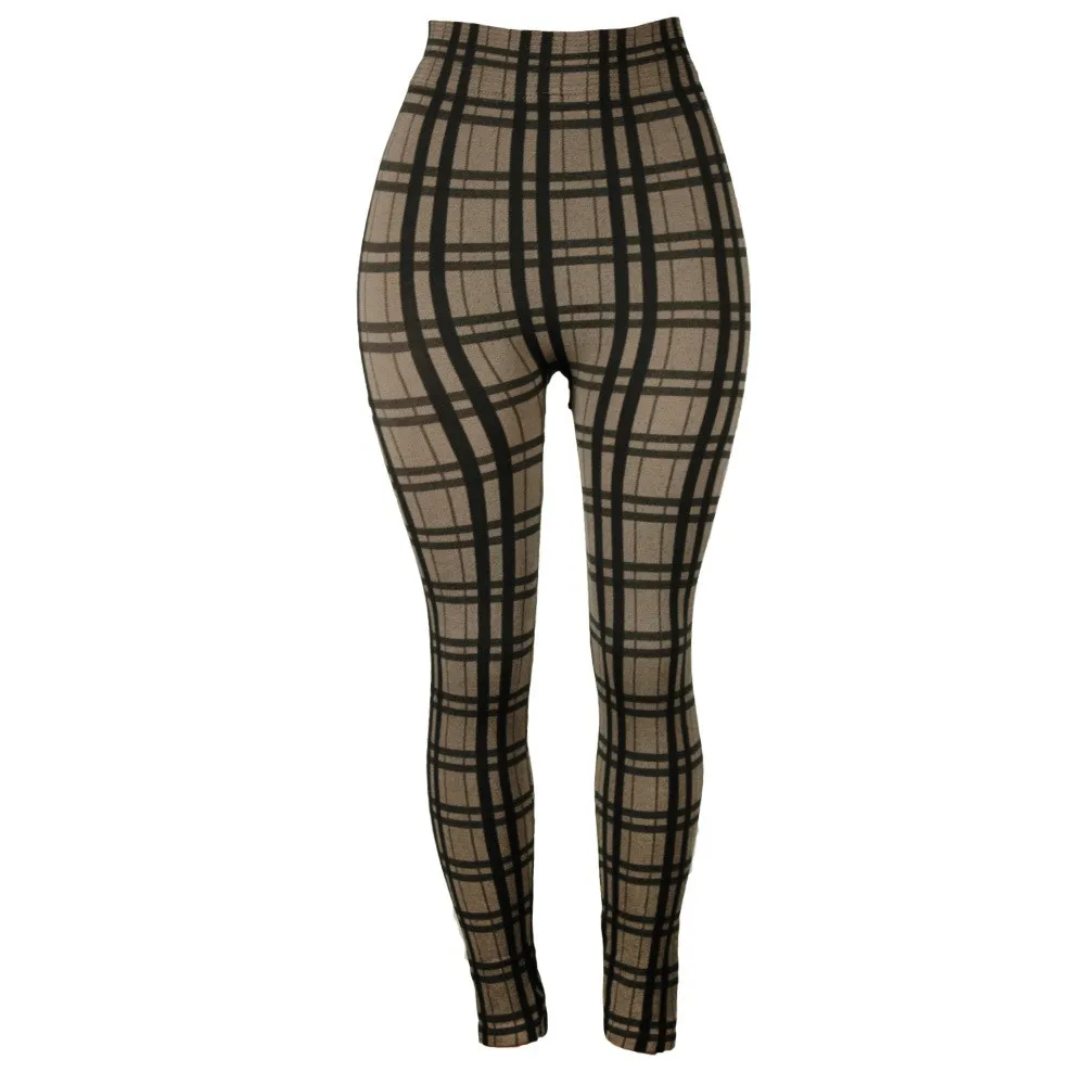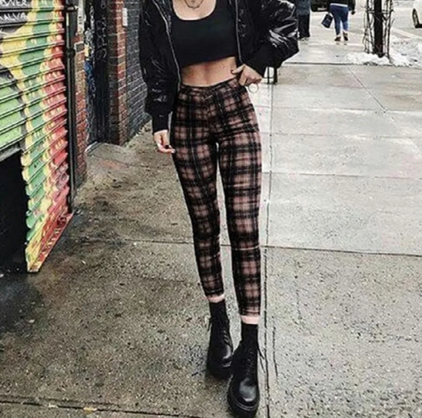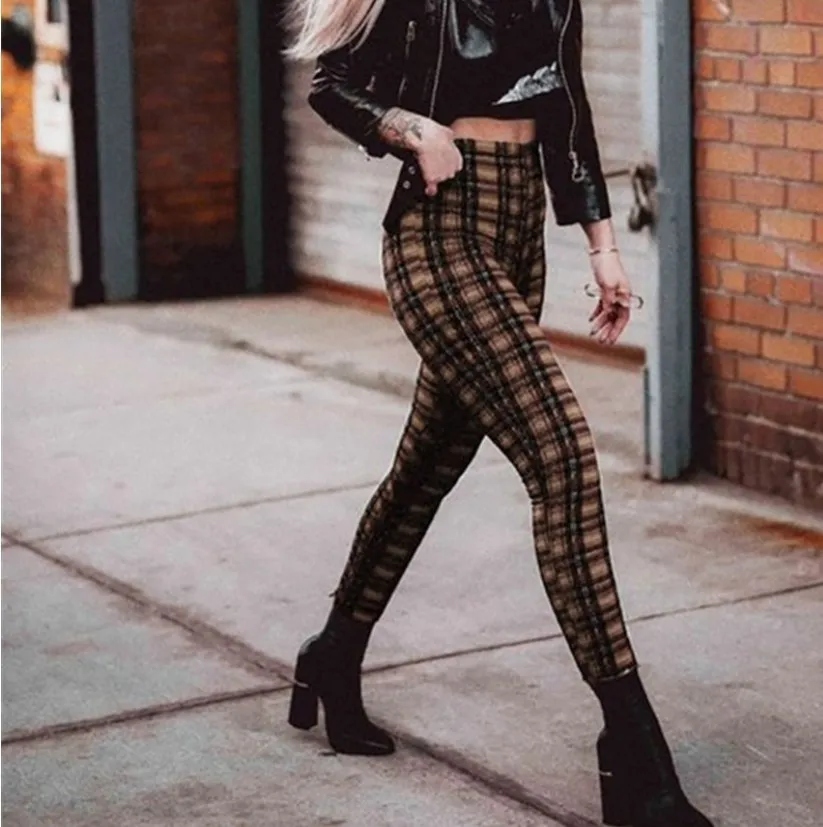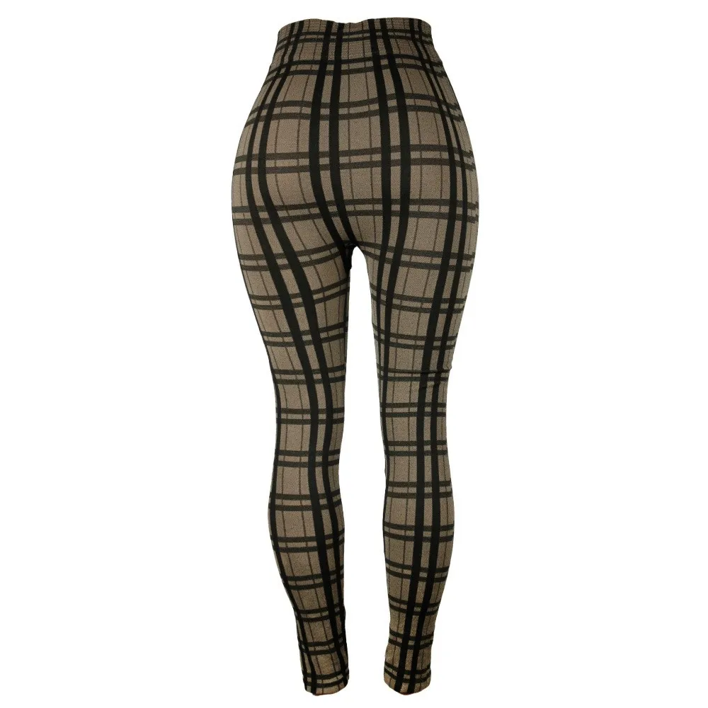 * Item Description:️Womens Check Plaid High Waist Leggings Tight Slim Elastic Pants Trousers