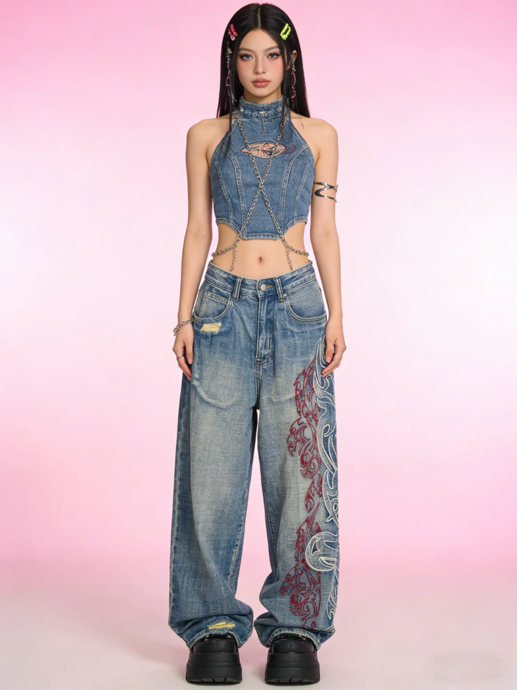 Be the first to review “Embroidered Baggy Jeans Women Rock Hip Hop”
