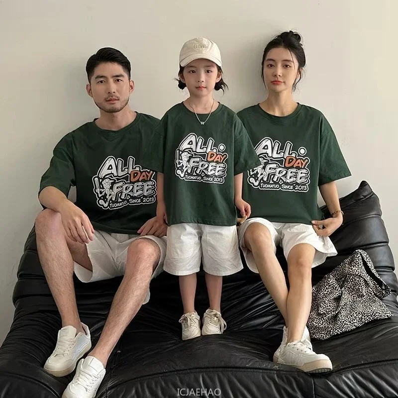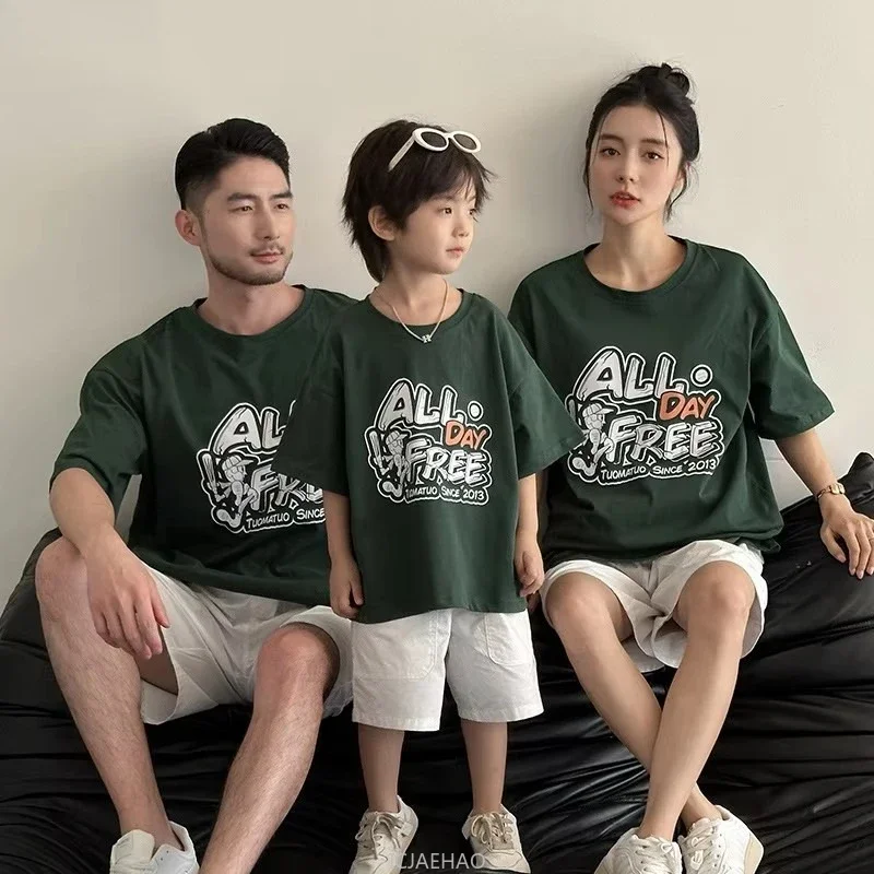 Be the first to review “Family Green T-shirt Korean Mom Dad and Daughter Son Tees Shorts Two Pieceand Children Cotton Clothes Sets Outfit Father Mother”