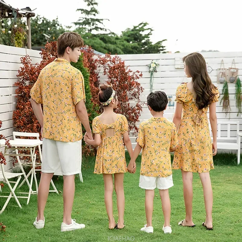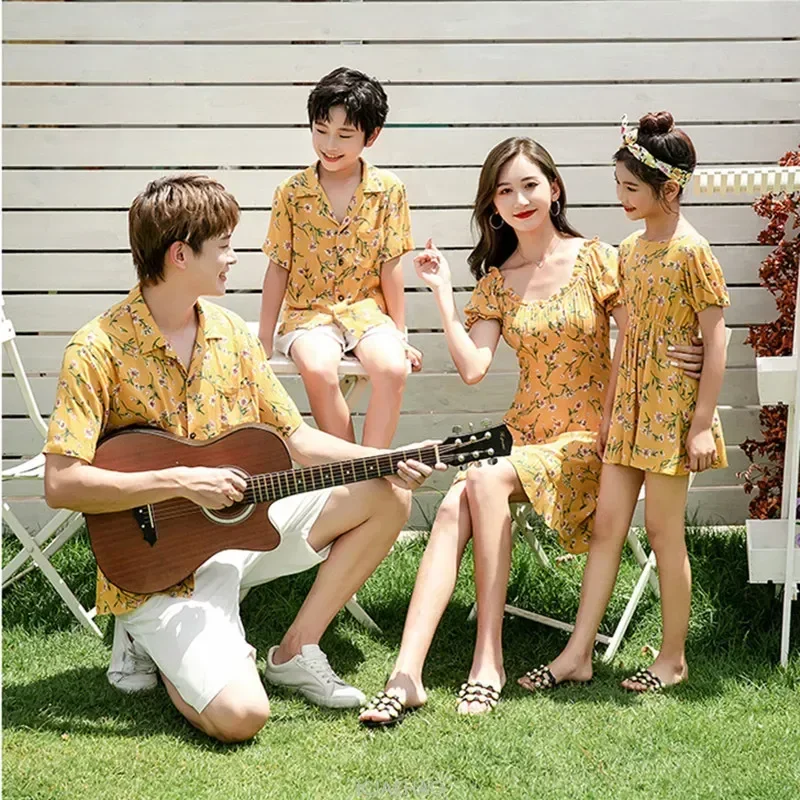 Family Parent Child Clothes Set Look Vacation Clothing Father andResort Floral Dress Son Baby Beach Shirts Sets Mother Daughter