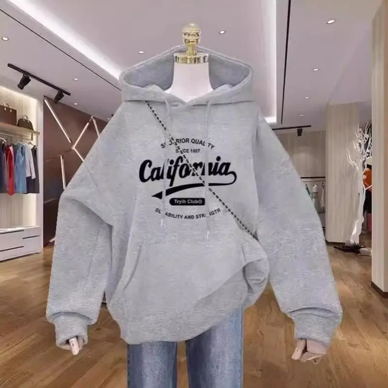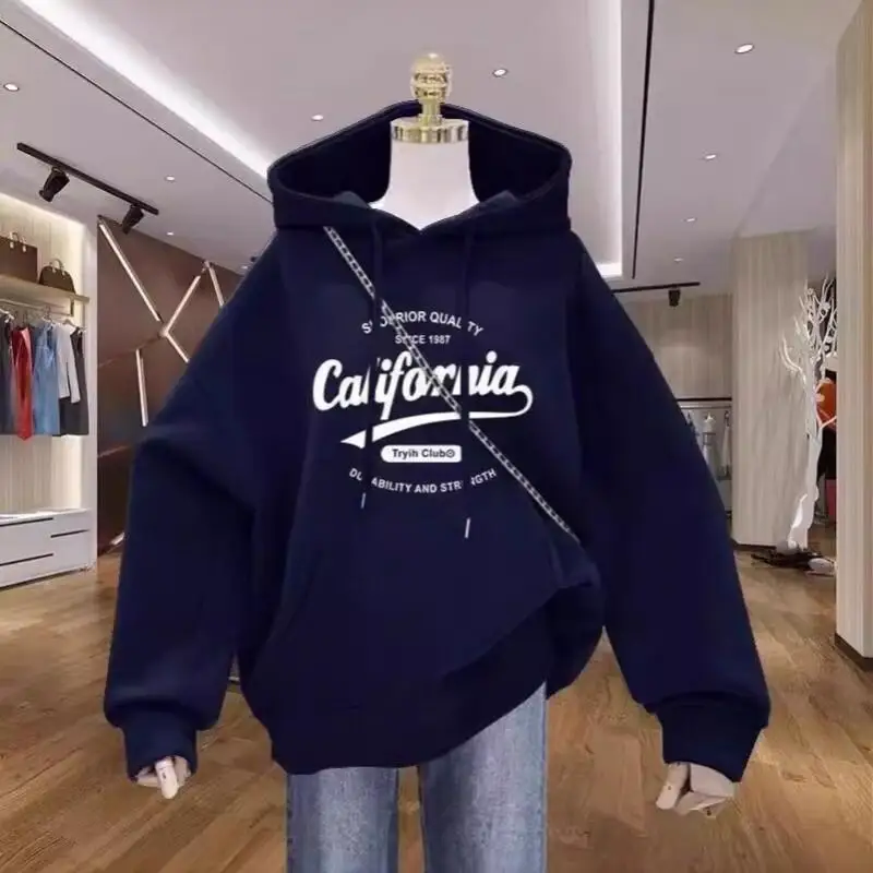 Be the first to review “Fashion Casual Hooded Sweatshirt for Women Fleece Lined Navy Blue Printed Trendy Early Spring New Graphic Harajuku Style Hoodie”