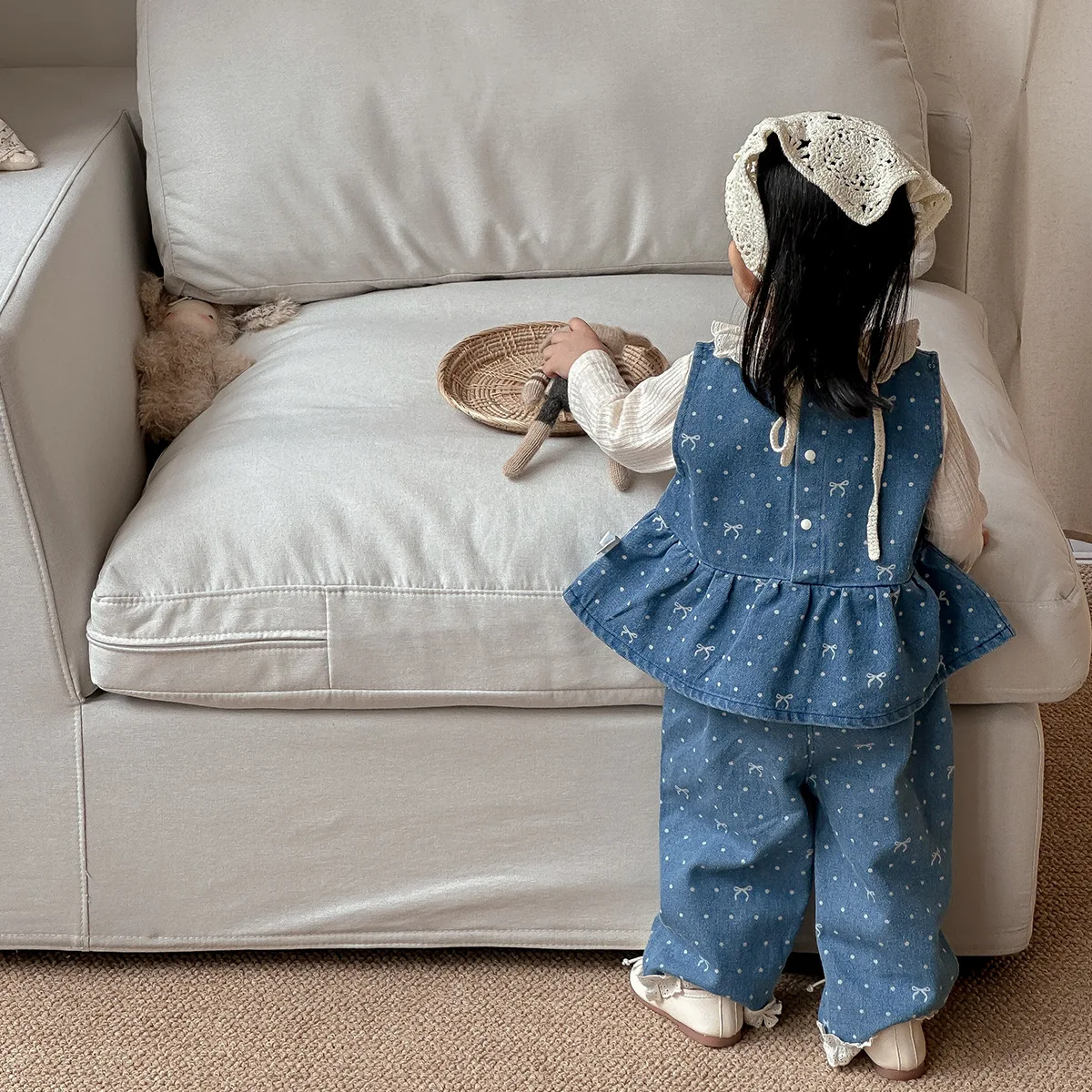 Girls’ Suit Spring Clothes New Children’s Denim Vest Pants Bottoming Shirt Spring and Autumn Clothes
