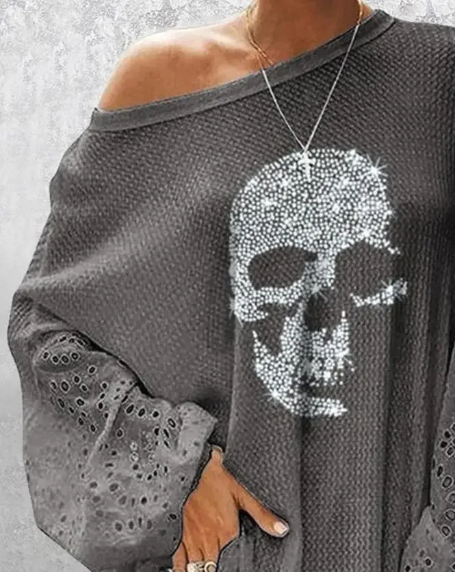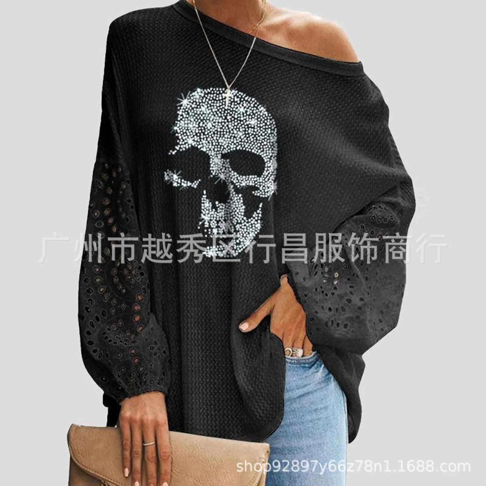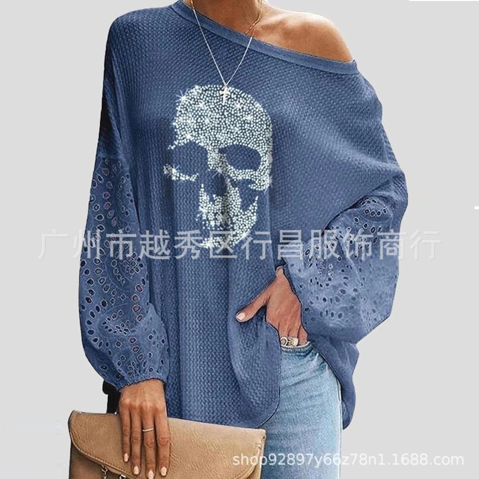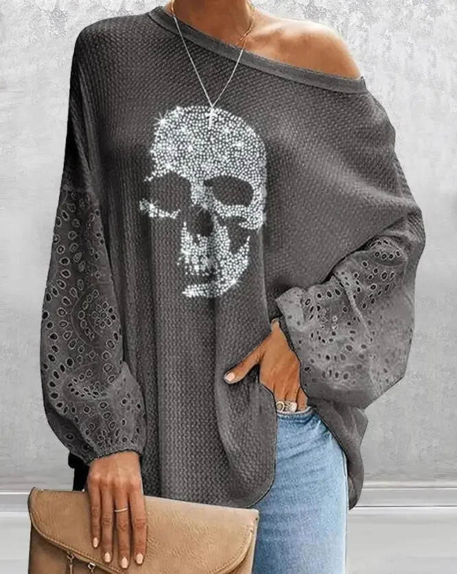 Be the first to review “Glitter Skeleton Lantern Sleeve Top Fashion Woman Blouses 2023 Shirts Round Neck Long Sleeves Female Clothing Autumn Spring”