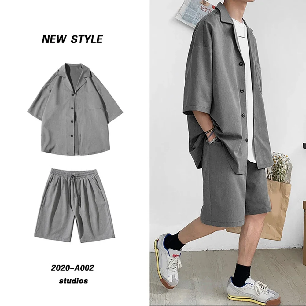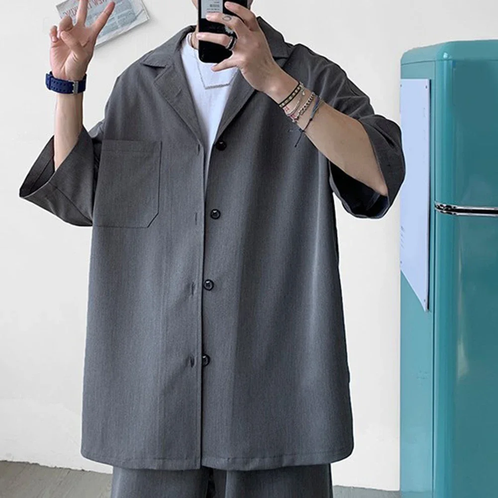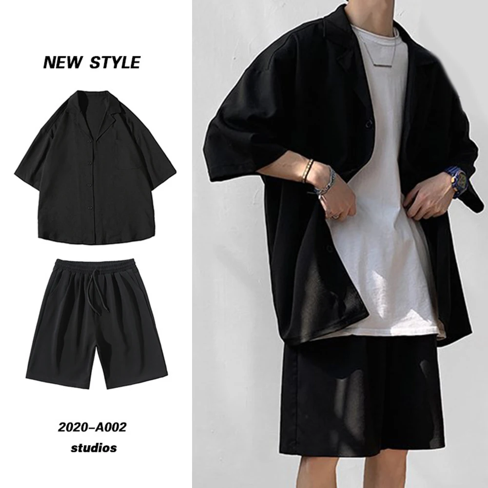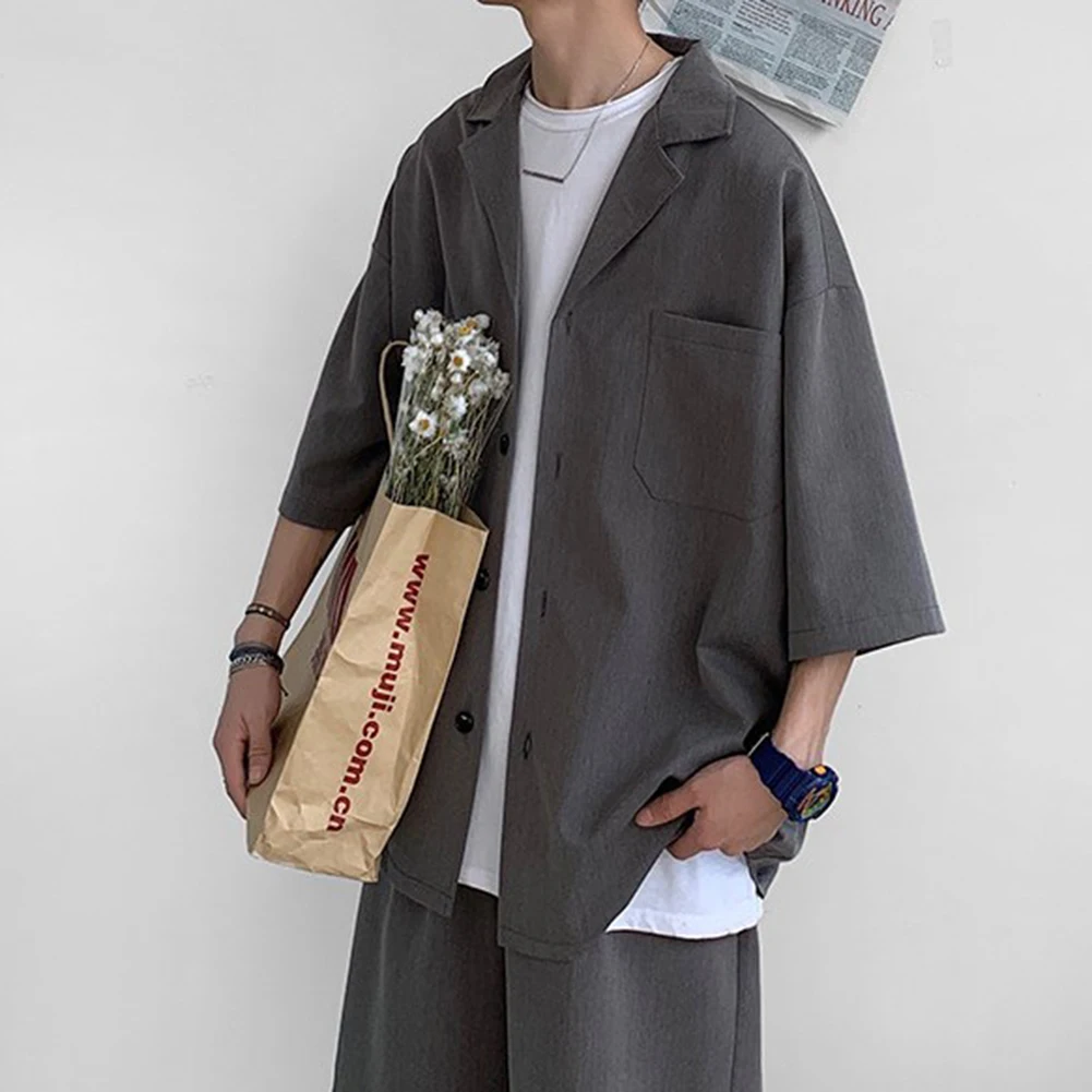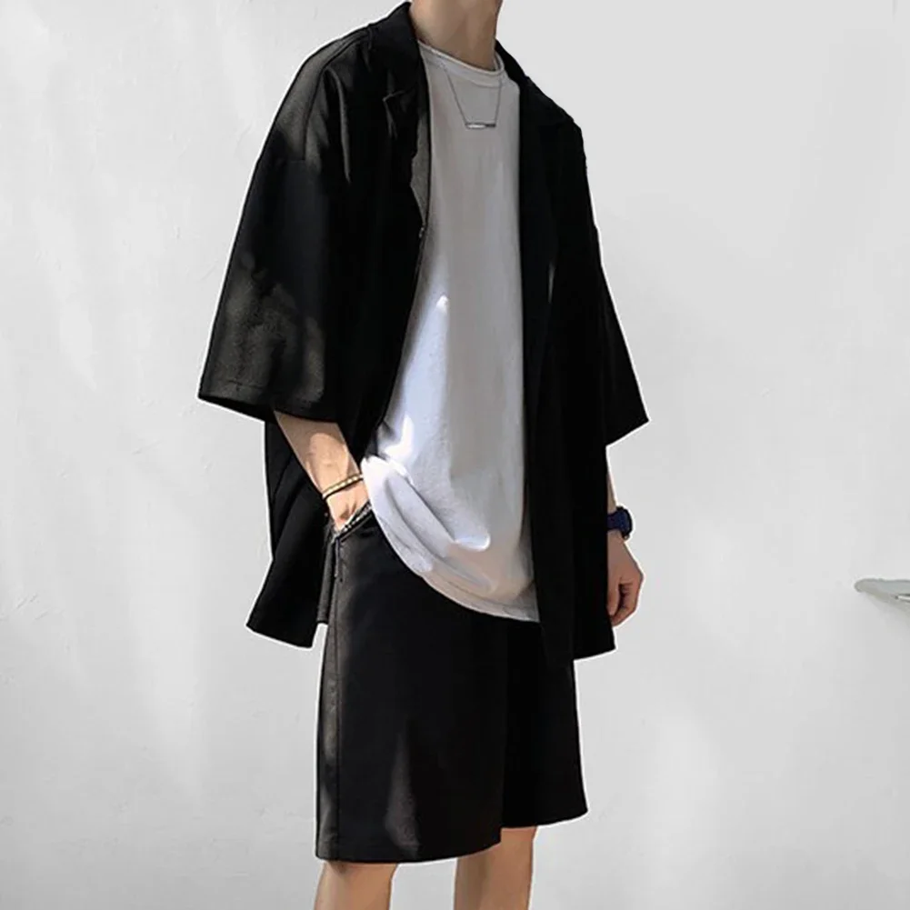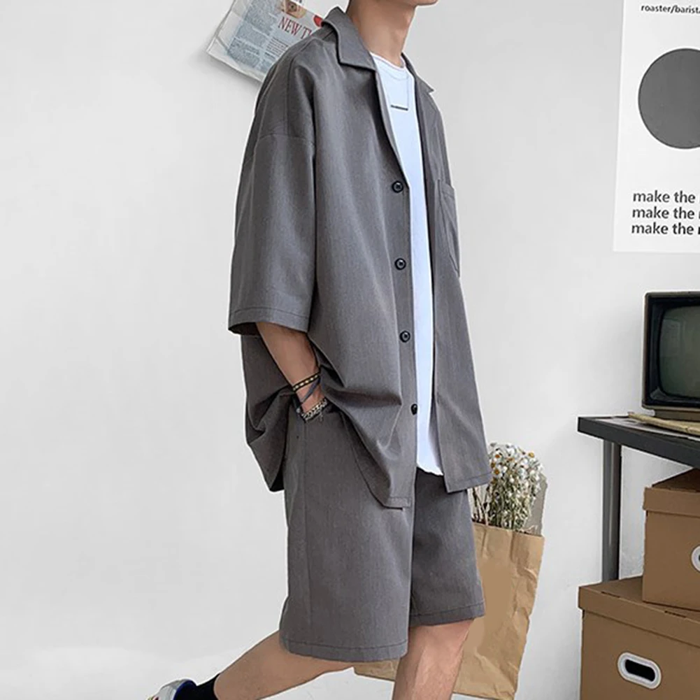 * Item Features:Men,Summer 2 Piece Set,Suit Jacket and Shorts,Korean Style Clean Fit Loose Short Shirt Outfits