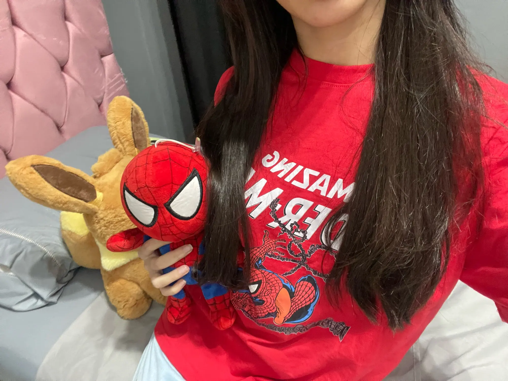 Super pretty and actually the shirt doesn’t feel like polyester at all but sadly the shirt is like radio active red, like it’s very very red wich doesn’t show in the pic, but it’s okay since spiderman is cook