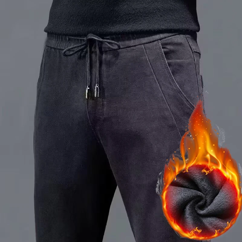 Men Fashion Winter Snow Warm Plush Jeans Male Fleece Lined Thickened Denim Pants Comfortable Classic Casual Formal Trousers