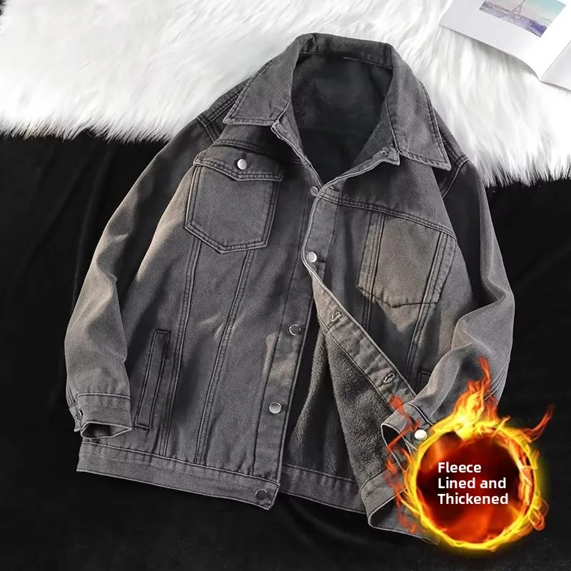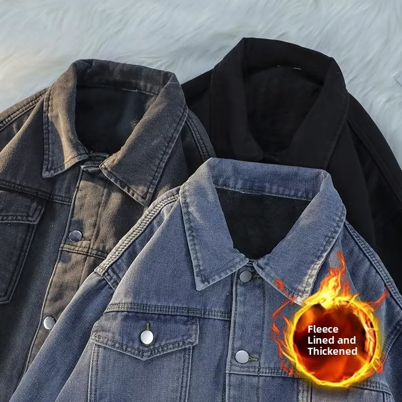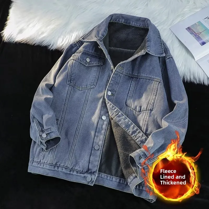 This men’s denim jacket features a warm fleece lining, perfect for keeping you cozy during the colder months.