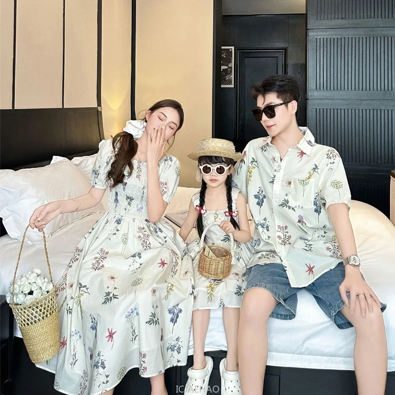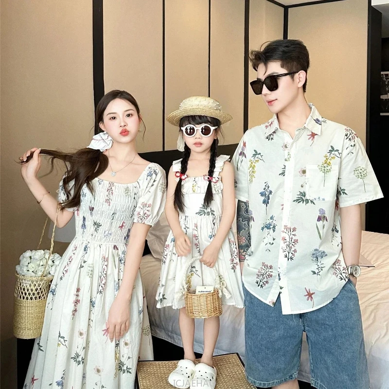 Mom Daughter Matching Dress Dad Son Holiday Shirts Baby Bodysuit Korean Sister Brother Clothes Couple Vacation Family Outfits