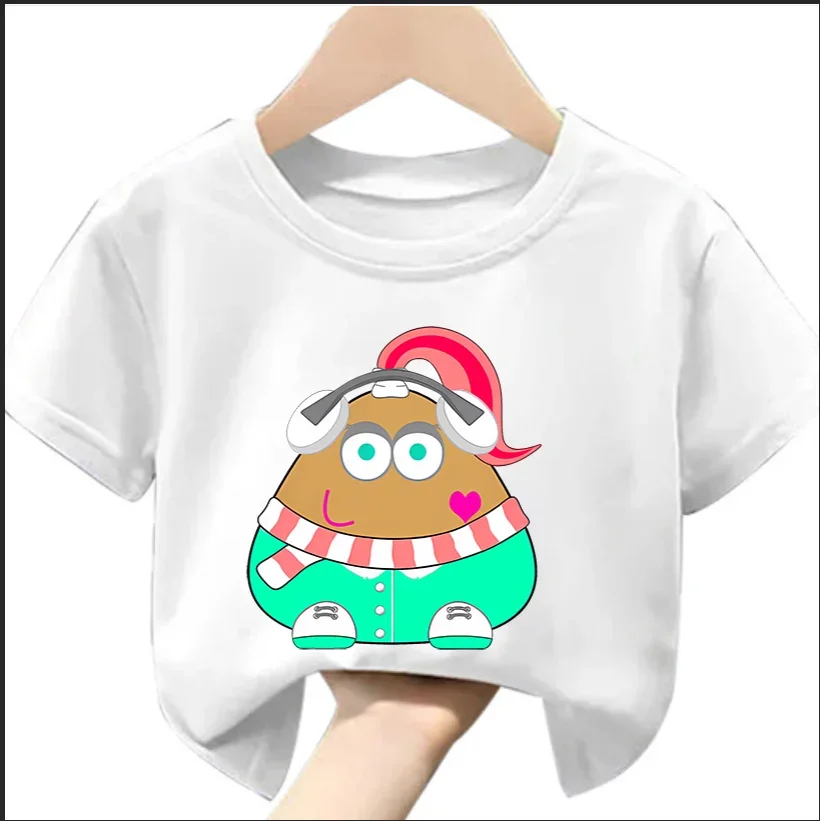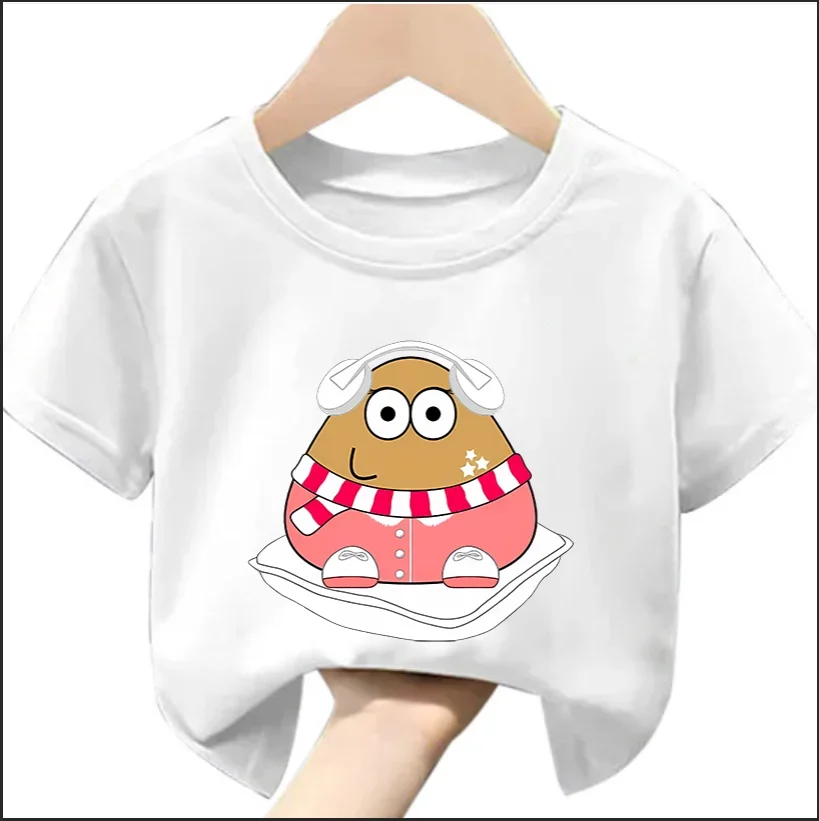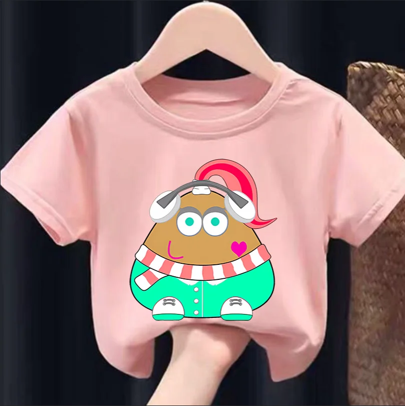 My Pet Alien Pou Kids Summer T-Shirt Cartoon round Neck Infant Tracksuit Tees Clothing for Boys And Girls