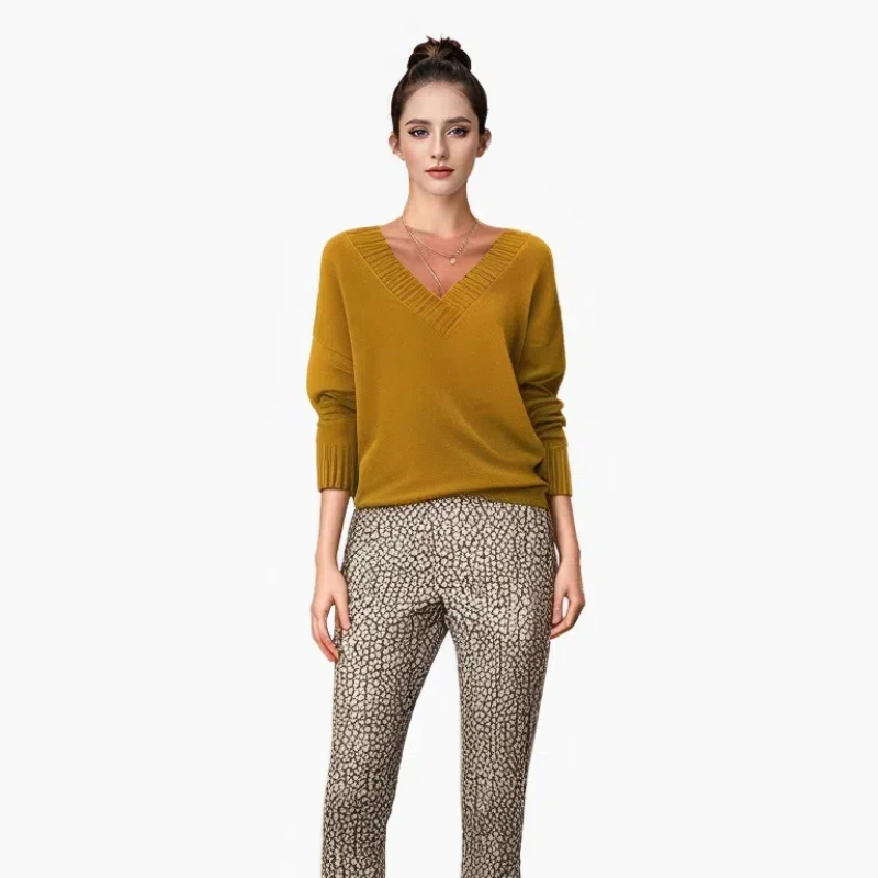 New Autumn and Winter Pullover Sweater for Women, Loose V-neck Casual Versatile Knitted Sweater Top 211