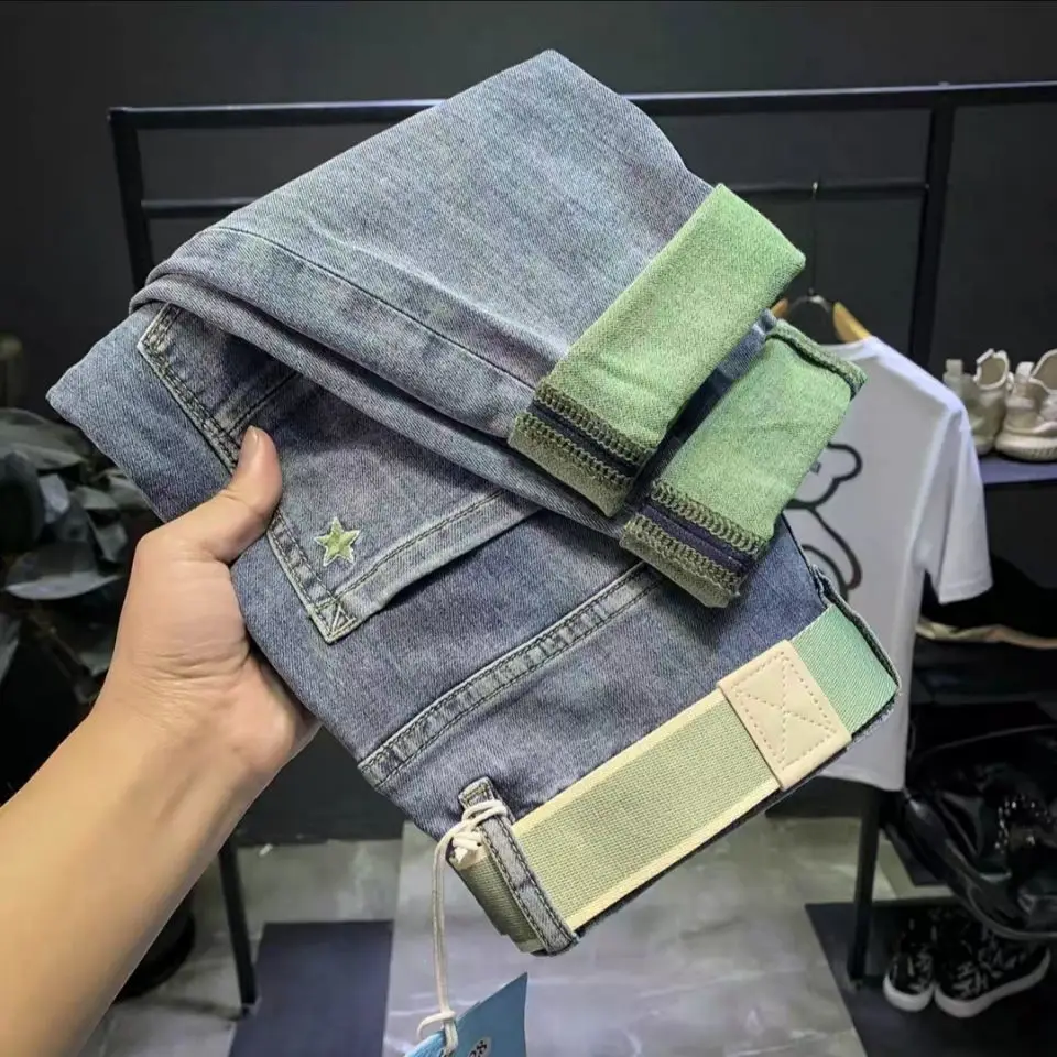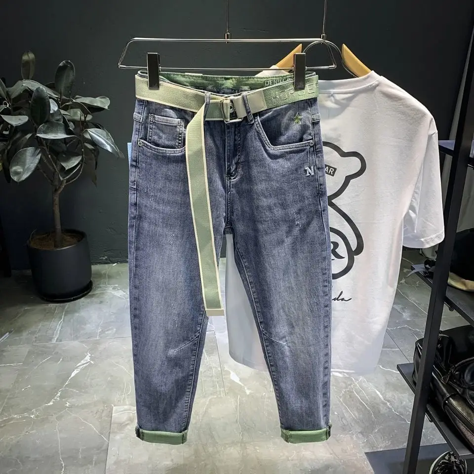 New Fashion Embroidered Denim Jeans Slim Fit Casual Bottoms Designer Spring and Autumn Korean Style Clothes Cowboy Pants for Men
