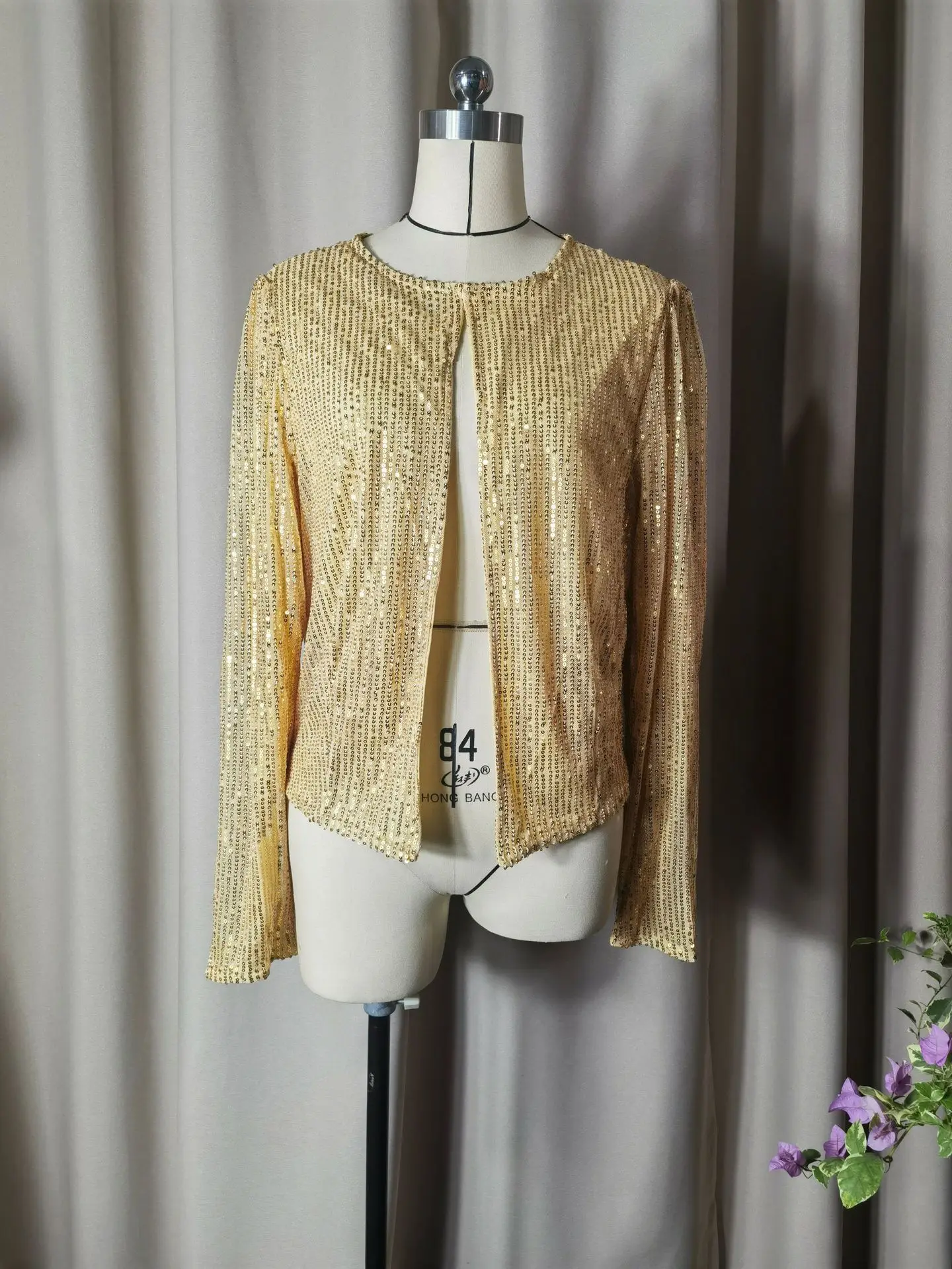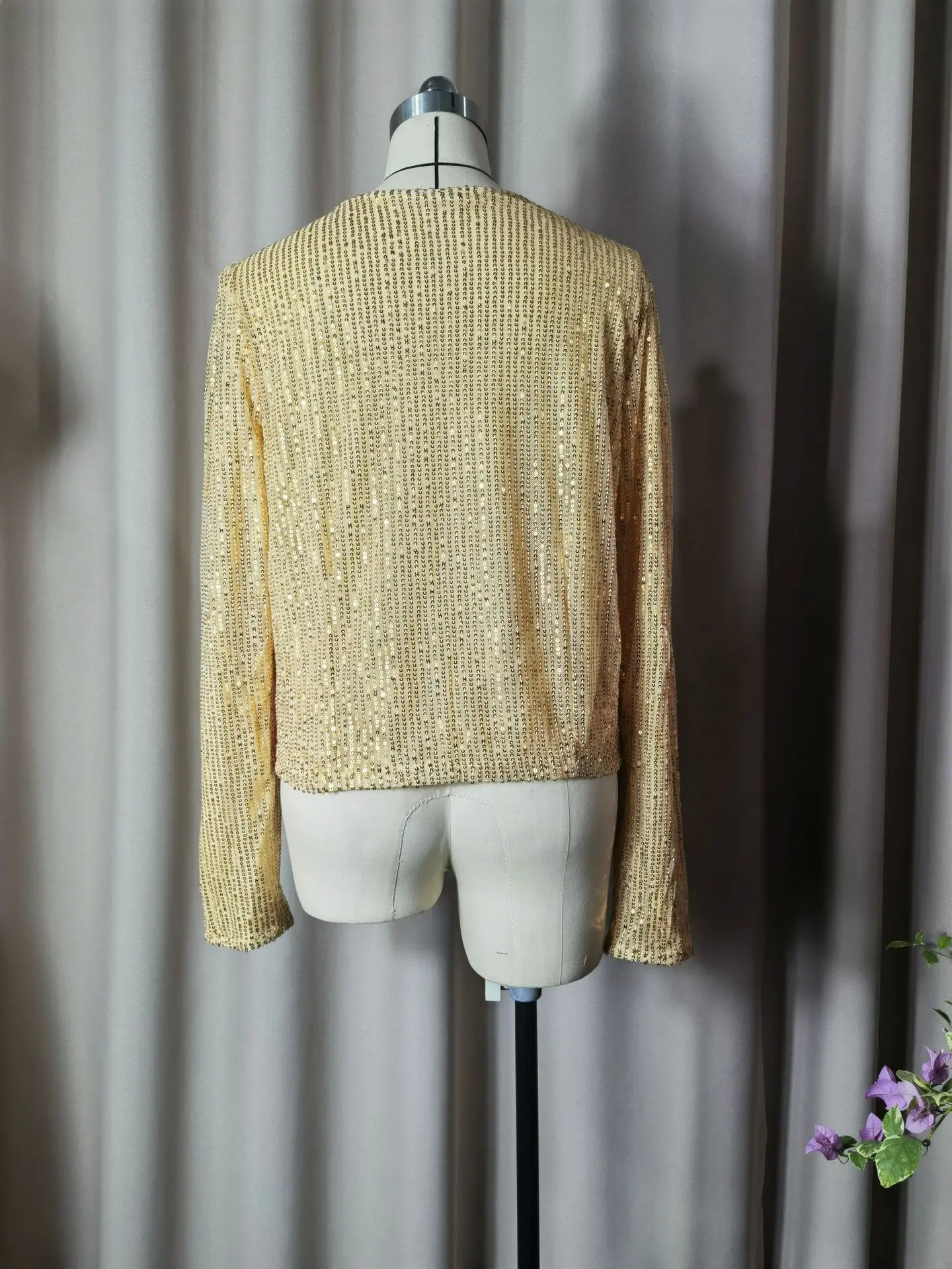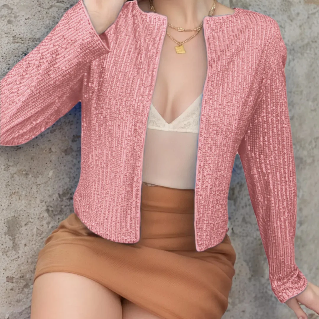 New Winter Clothes Woman Temperament Casual Solid Color Versatile Elegant Slim Coat Long-sleeved Sequined Round Neck Cardigan