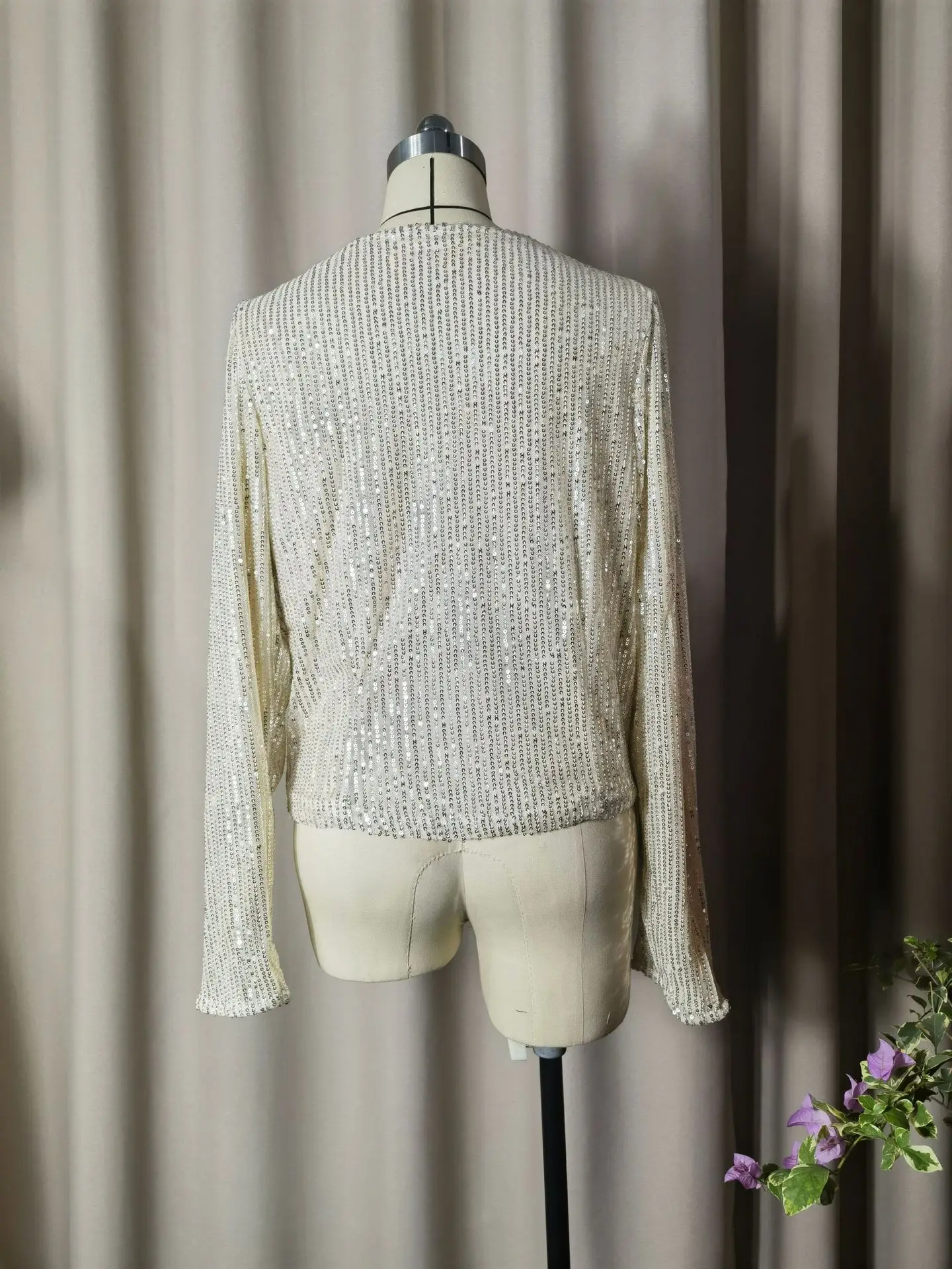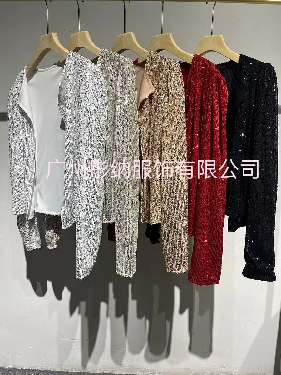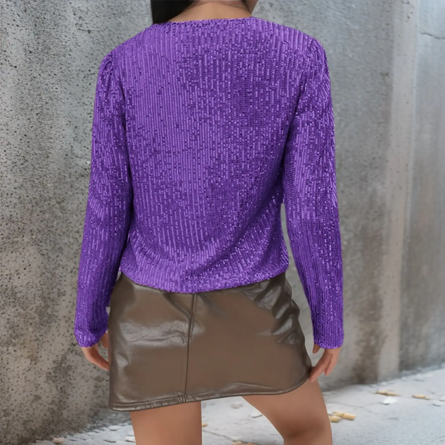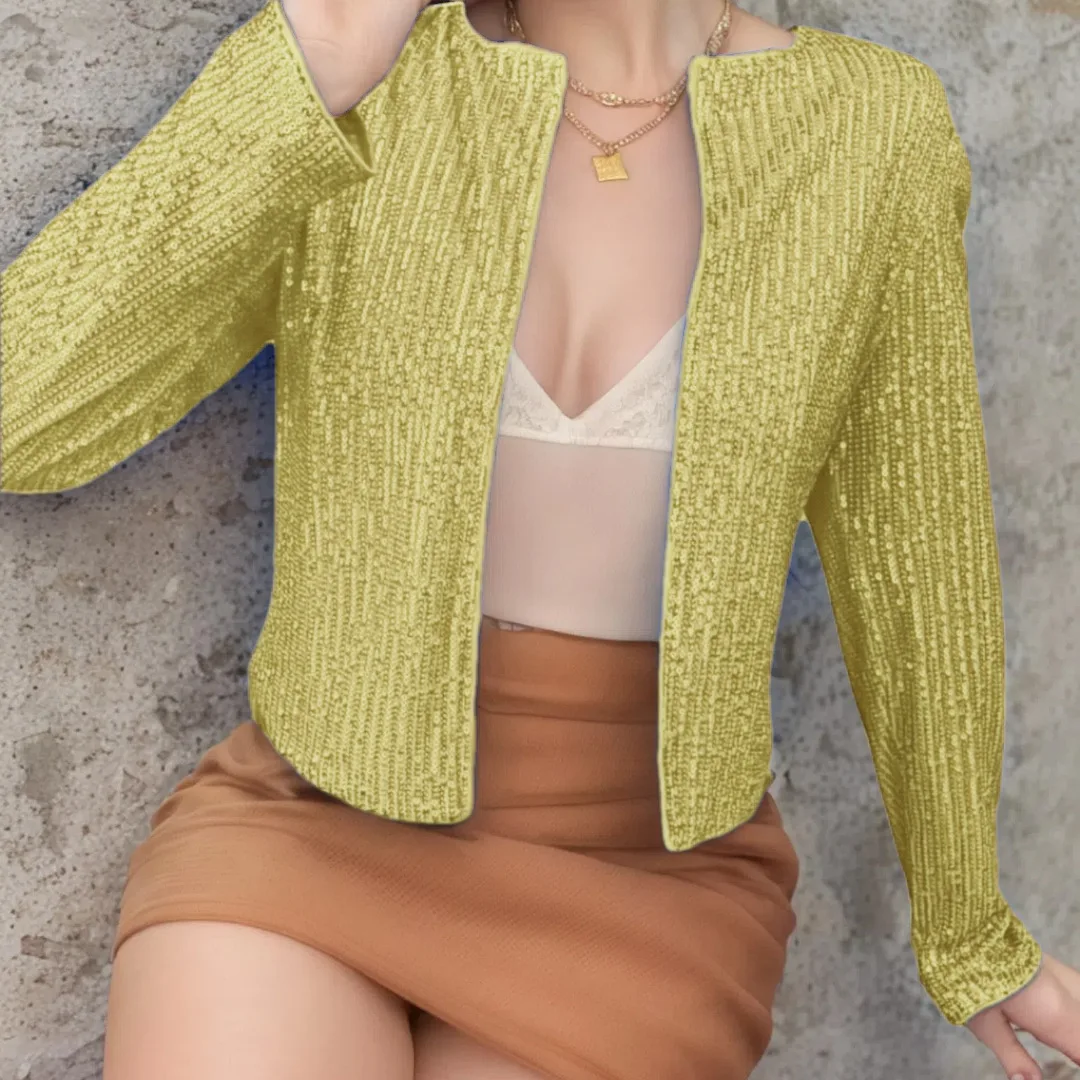 New Winter Clothes Woman Temperament Casual Solid Color Versatile Elegant Slim Coat Long-sleeved Sequined Round Neck Cardigan