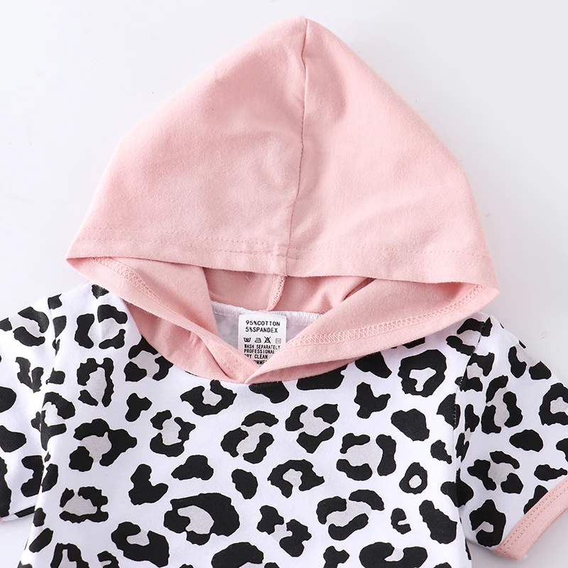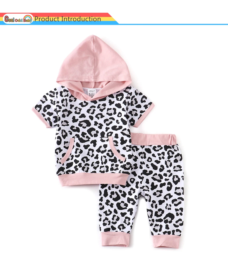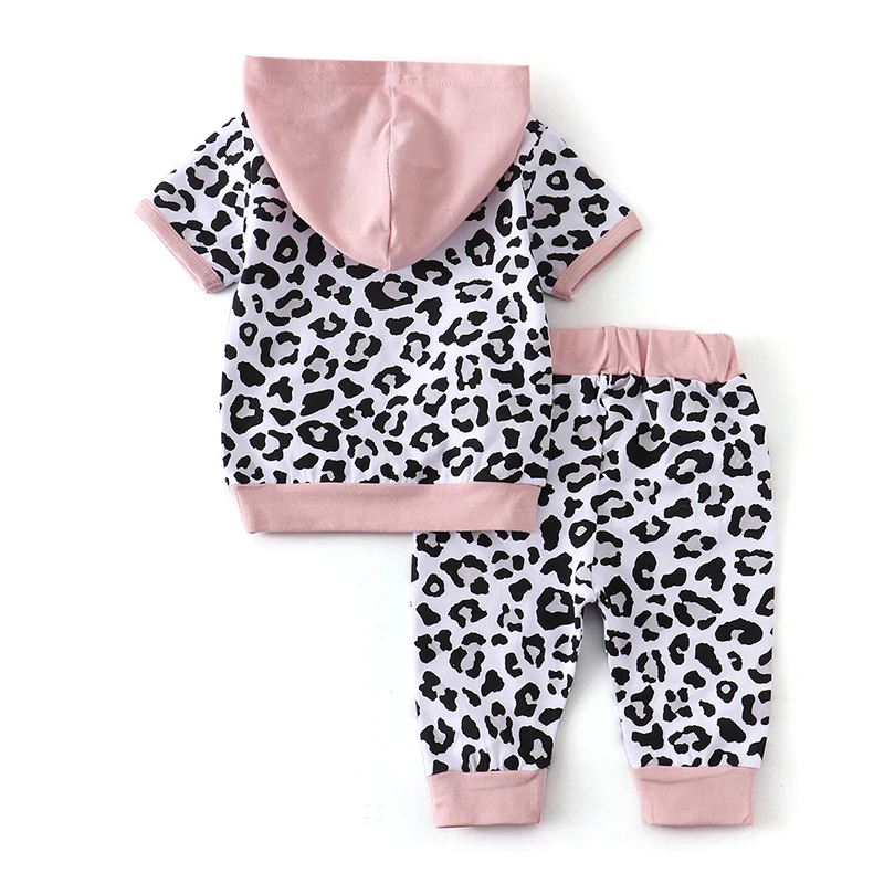 Infant Newborn Baby Girl Clothes Set Summer Fashion Leopard Short Sleeve Hooded Tops Cropped pants 2Pcs Outfits Toddler Clothing