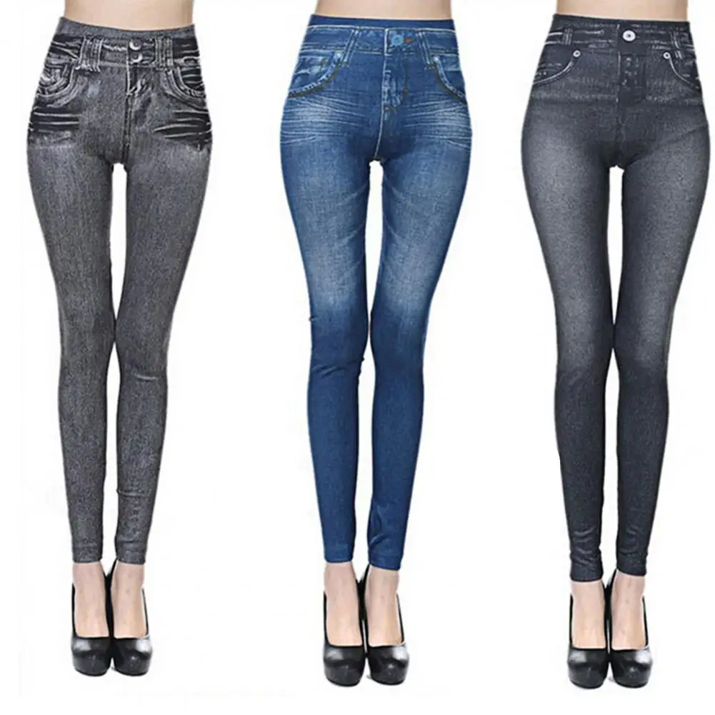 Women Jeans High Waist Slim Denim Print Stretch Pencil Pants for Work