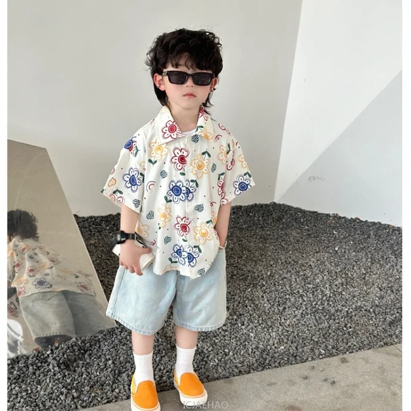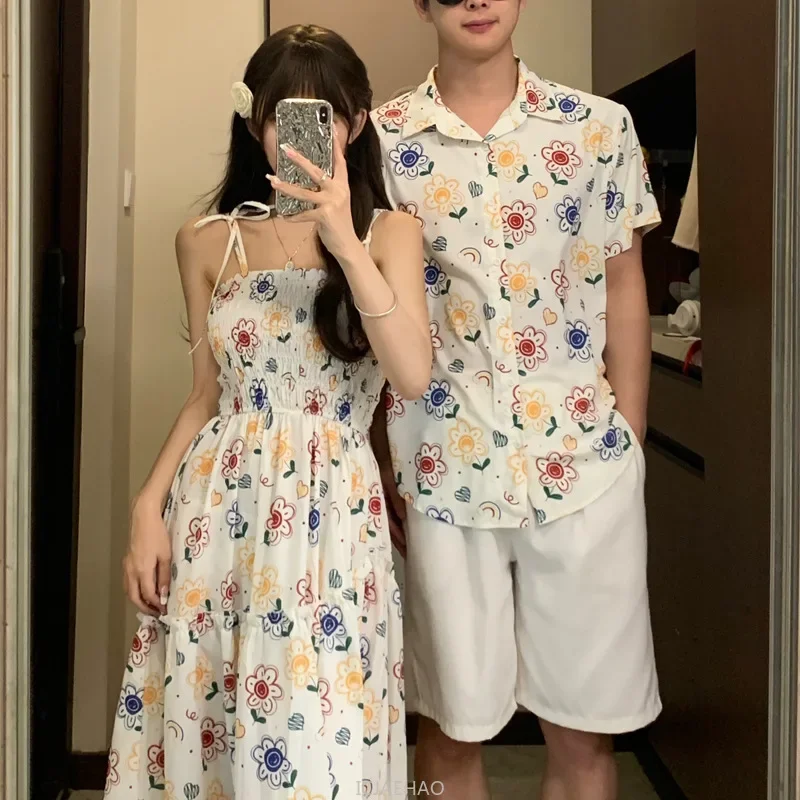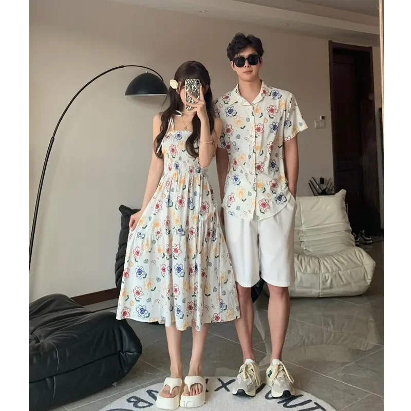 Parent-Child Family Holiday Outfits For Couple Brother Sister Dad Son Beach Shirts Mom Girl Floral Smocking Dress Korean Clothes