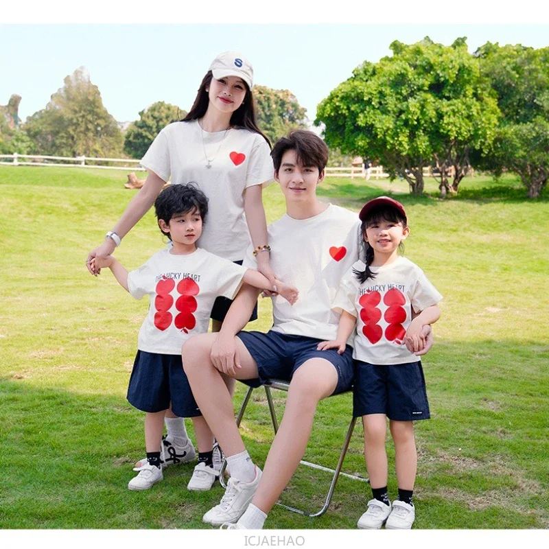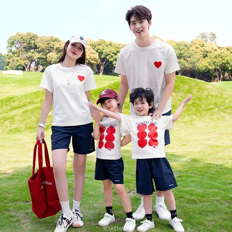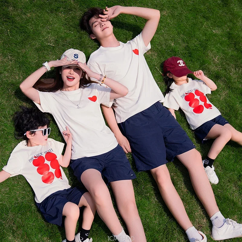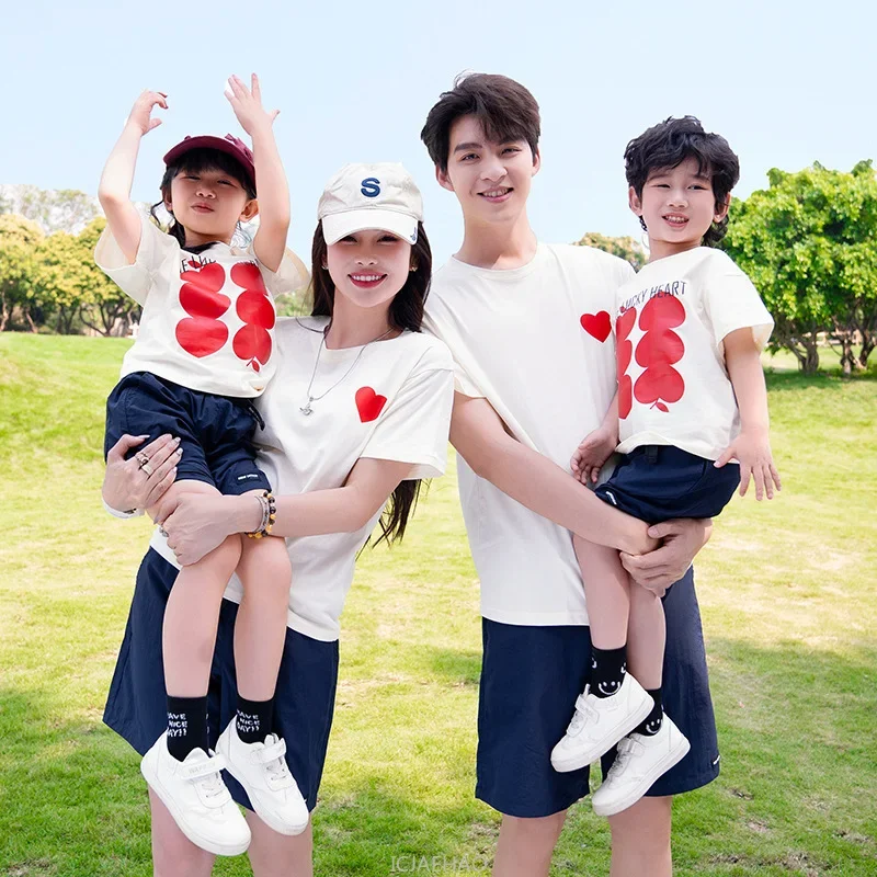 Parent-child Matching Family Outfits Short Sleeve T Shirts Tops and Shorts Two Piece Sets Clothes Father Mother and Daughter Son
