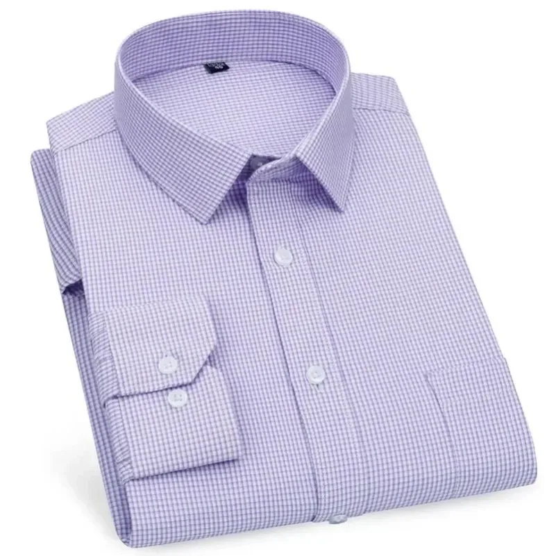 Plaid Striped Checked Men’s Business Casual Shirts Cotton Regular Fit Long Sleeve White Blue Social Work Dress Shirts GOZBKF