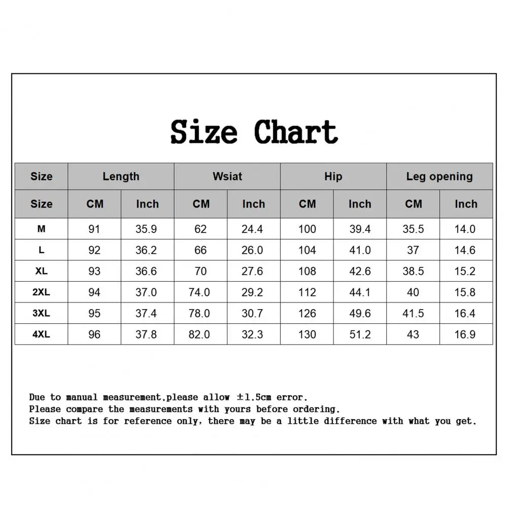 [Our Size 4XL] Length: 96cm/37.8", Waist: 82cm/32.3", Hip: 120cm/47.2", Leg Opening: 43cm/16.9" (Approx.)
