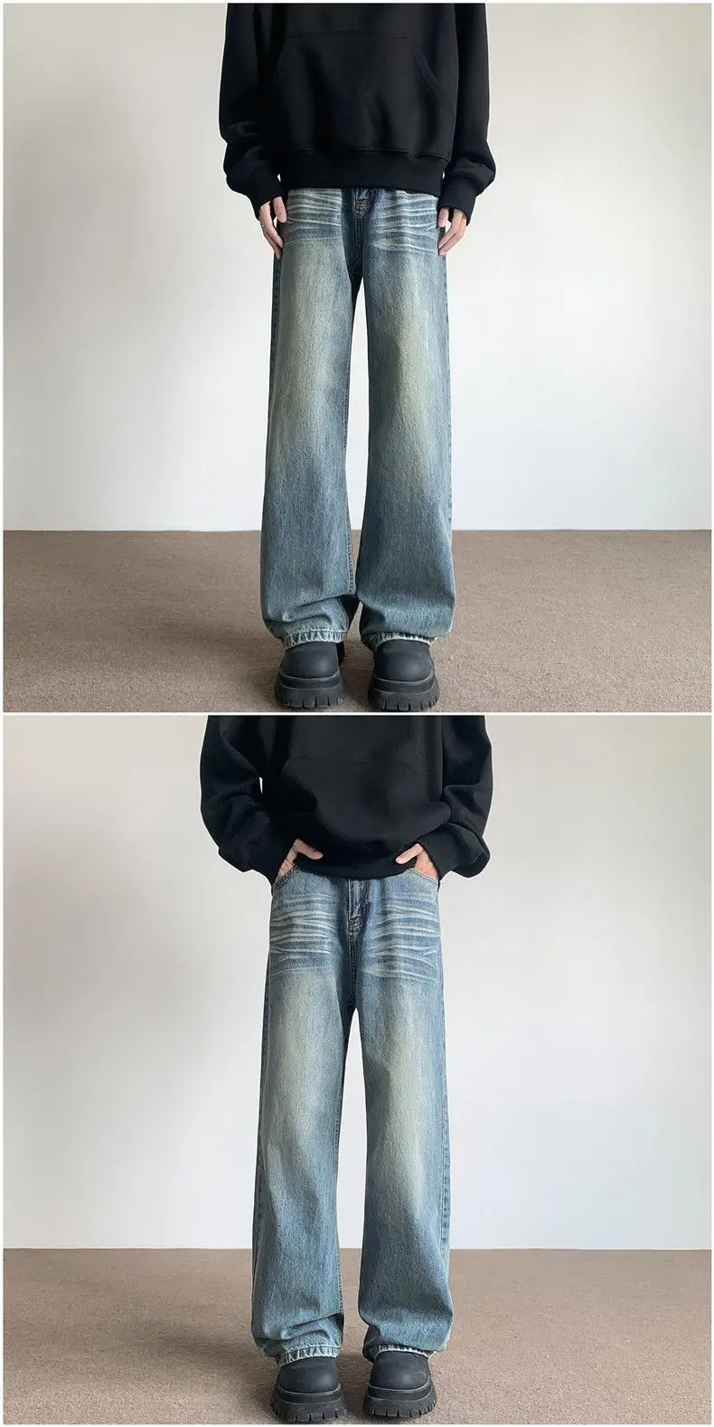 Be the first to review “Retro American Style Wide Leg Jeans Men’s Autumn Winter New Trendy Brand Design Loose Floor-Length Pants Casual Streetwear Jeans”