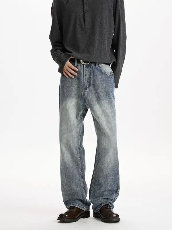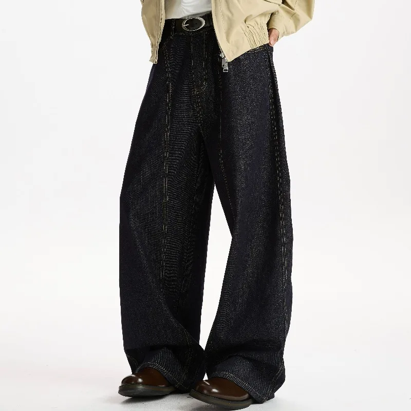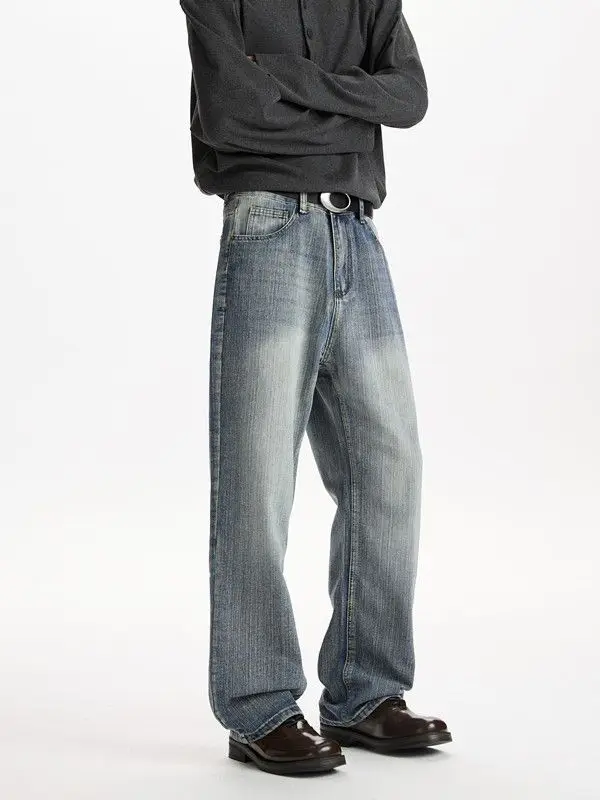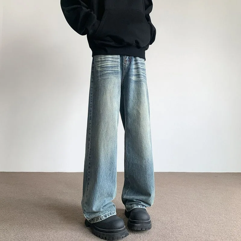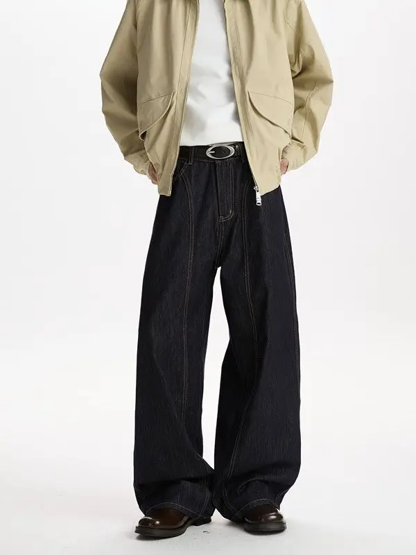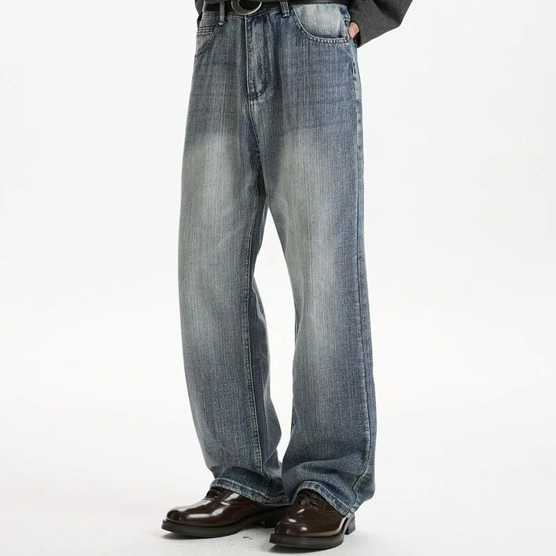 Retro American Style Wide Leg Jeans Men’s Autumn Winter New Trendy Brand Design Loose Floor-Length Pants Casual Streetwear Jeans