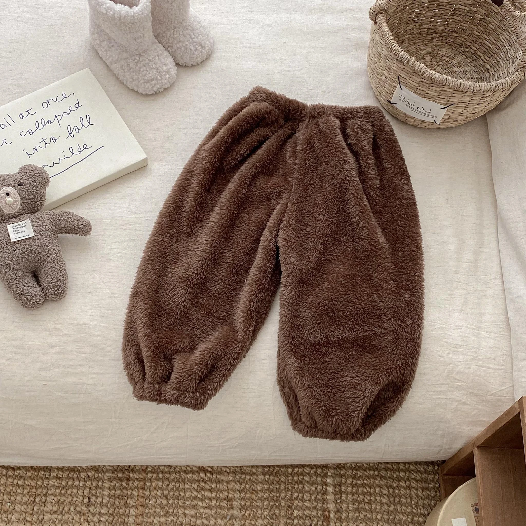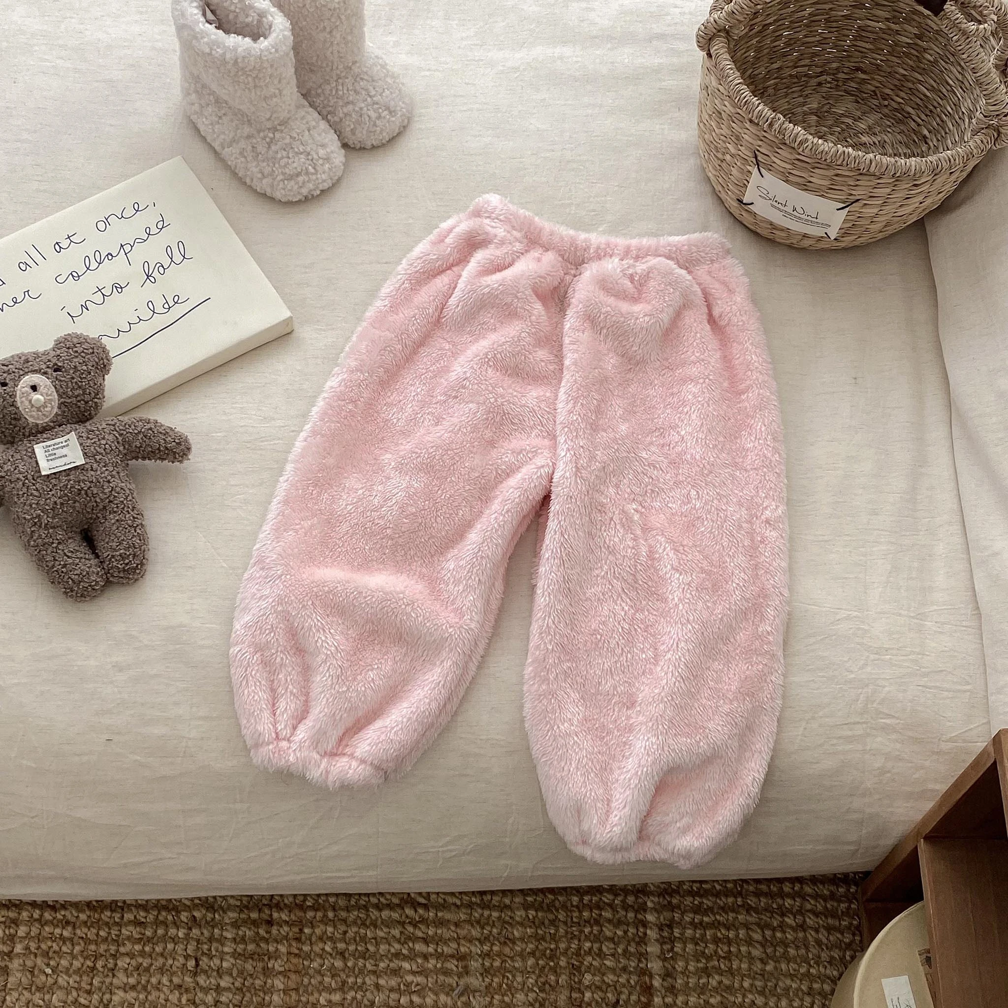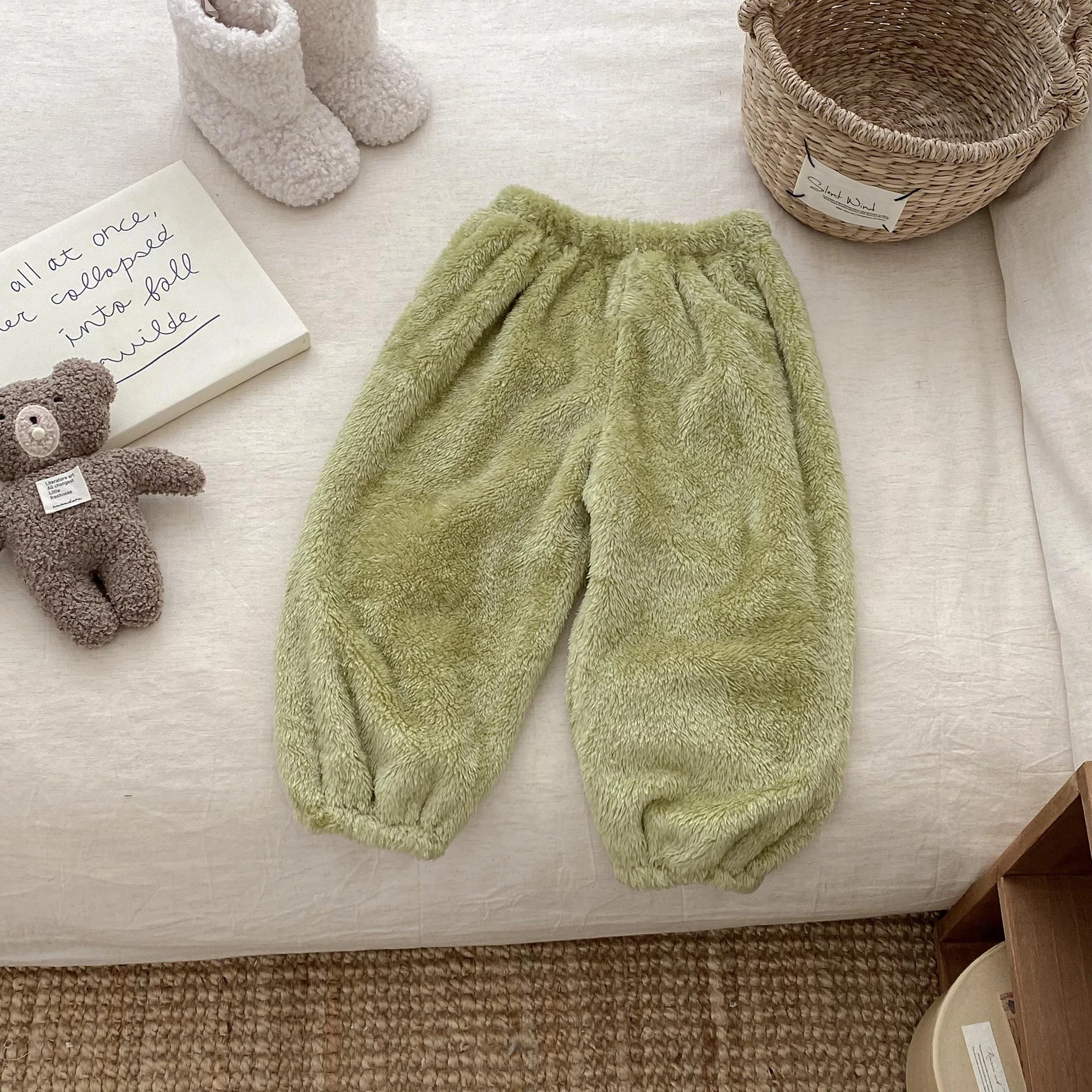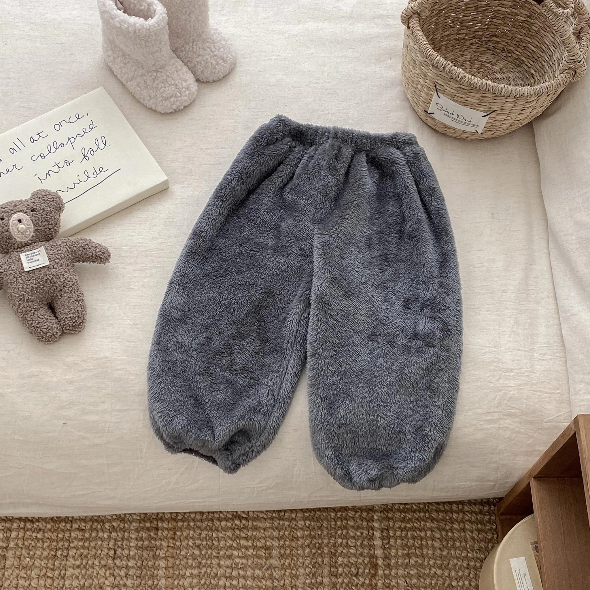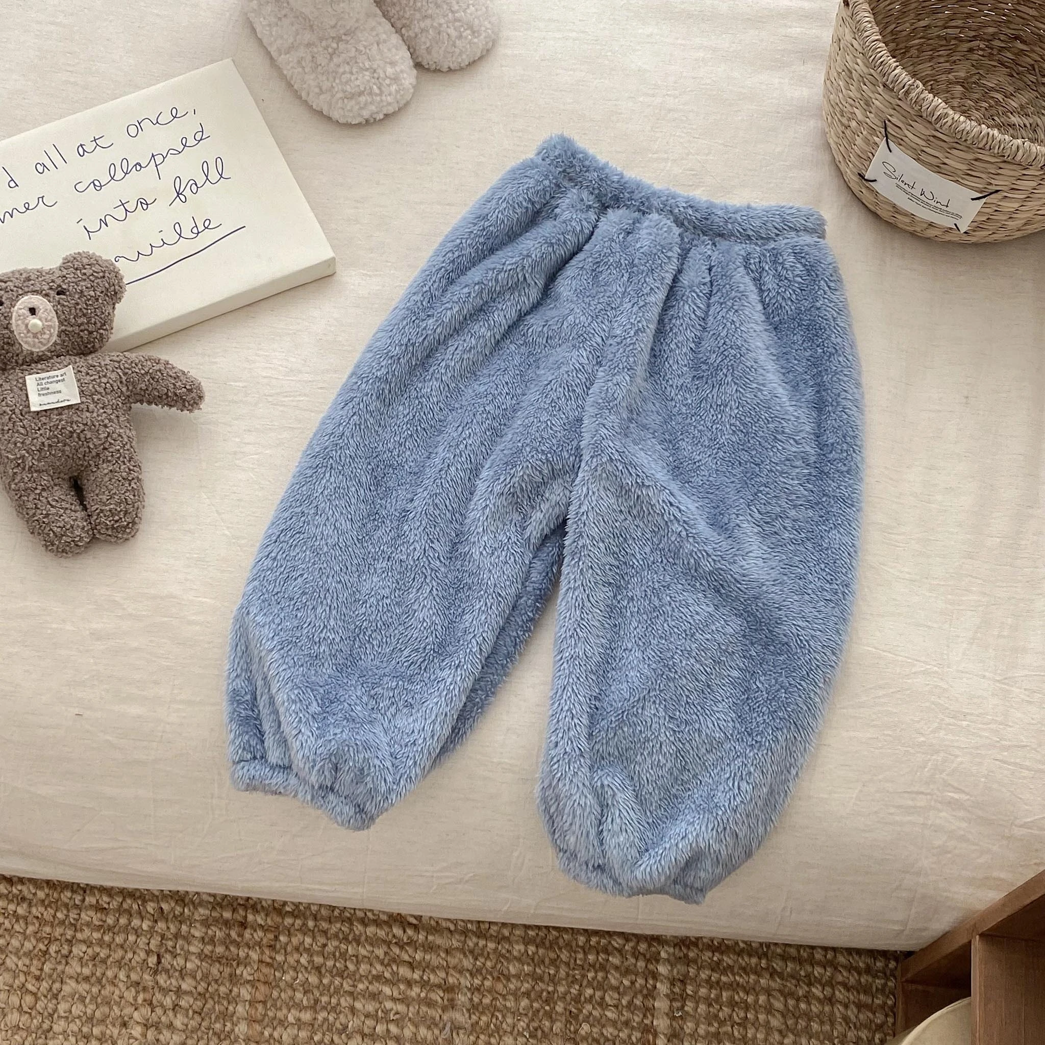 Solid Color Simple Casual Trousers Children’s Home Clothes Autumn Winter Warm Plush Long Pant Baby Girls Boys Clothing Pants