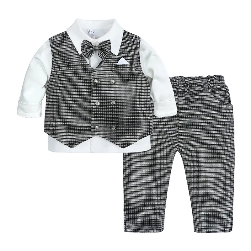 Spring Children’s Suit Baby One-year-old Dress Gentleman Long-sleeved Shirt Vest Pants Three-piece Set