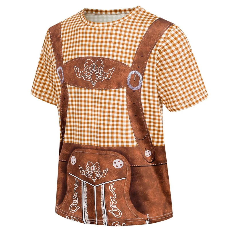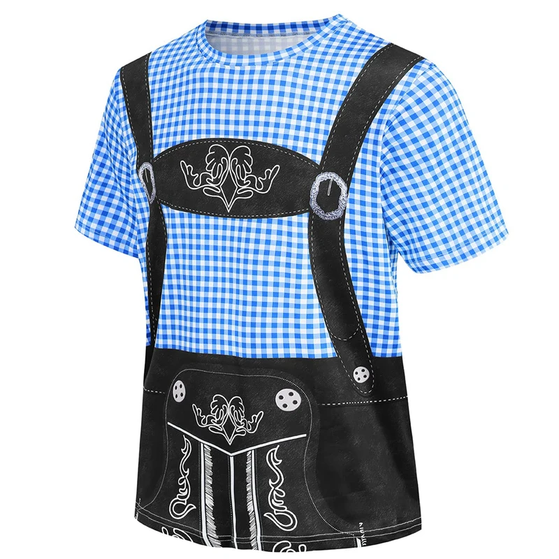 Striped Check Cosplay T-shirt Round Neck Short Sleeves False Shoulder T Shirt 3D Printing For Men 2024 Summer New Funny Tees
