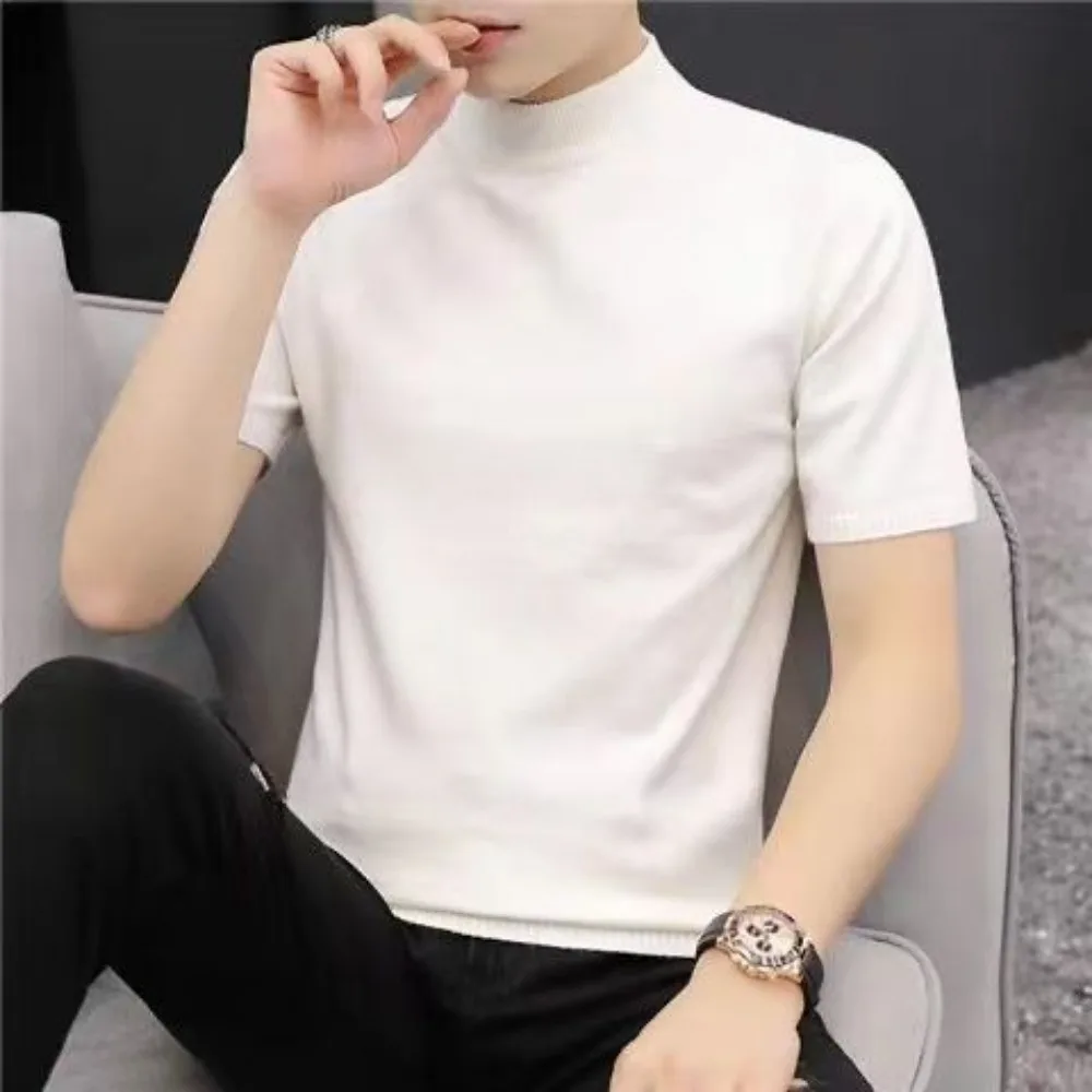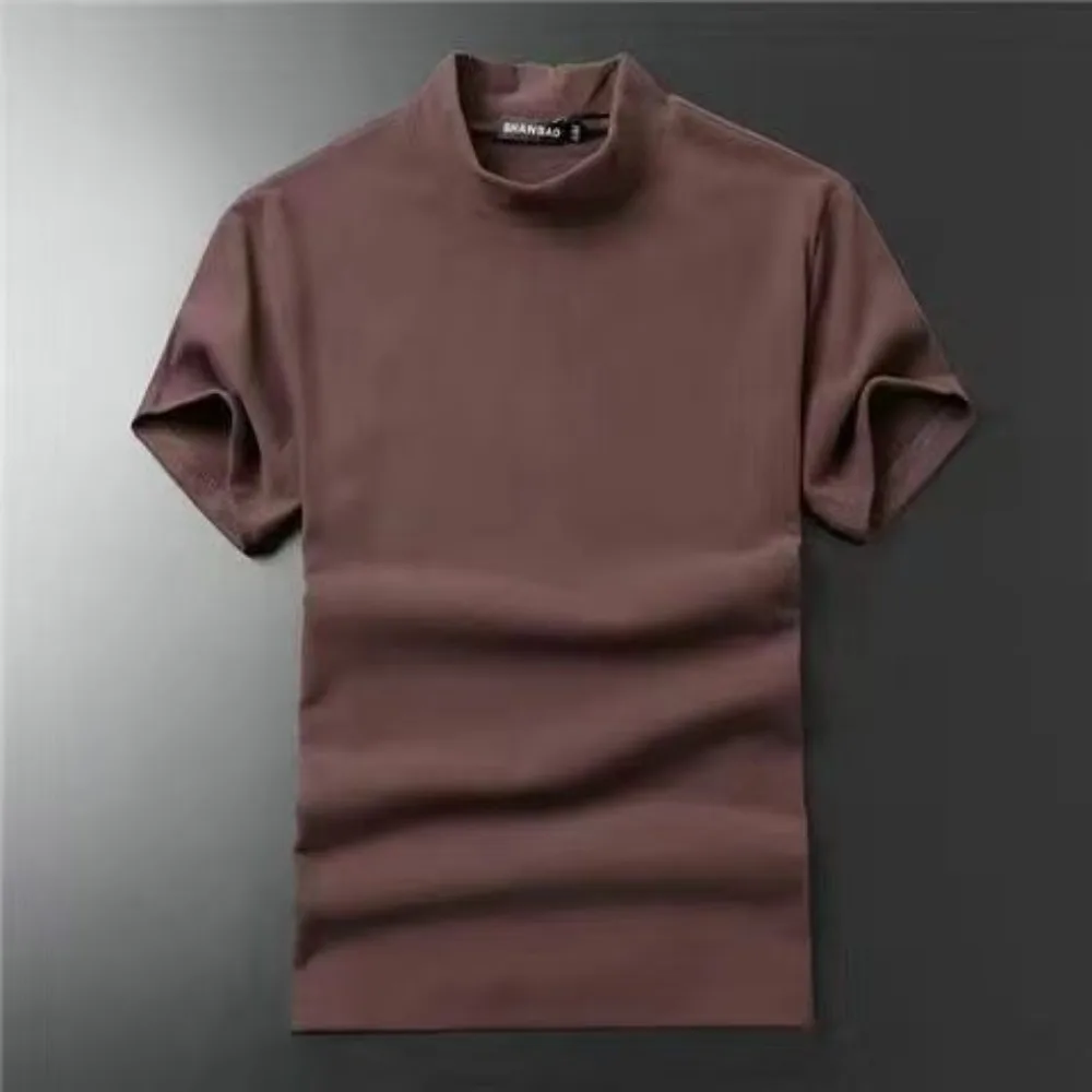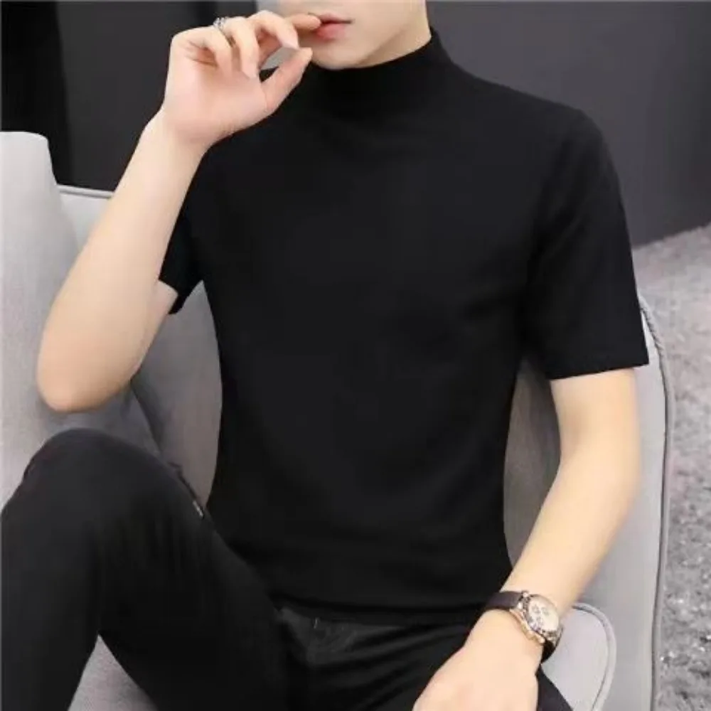 Introducing our Summer High Neck Solid Color Turtleneck T-Shirts for men, the perfect addition to your wardrobe! These casual slim-fit t-shirts feature a solid color design and short sleeves, making them an essential piece for any fashion-forward man.