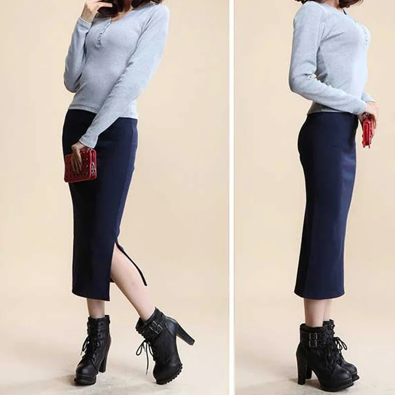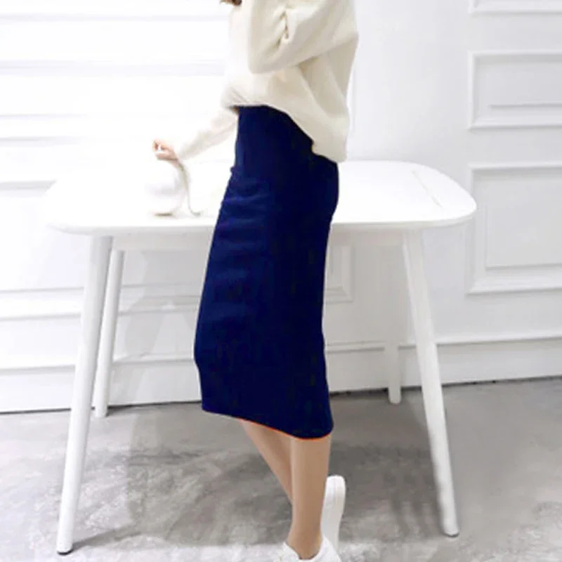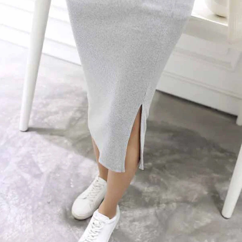 Summer Women Black Skirts Sexy Chic Pencil Skirts 2025 Slim Fit Female Faldas Wool Rib Knit Long Package Hip Split Waist Skirt