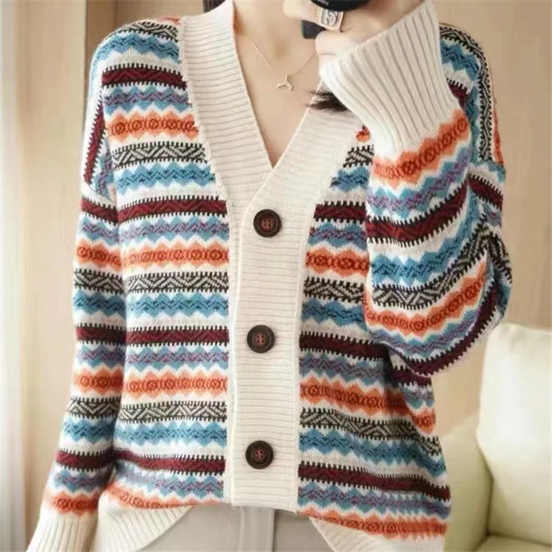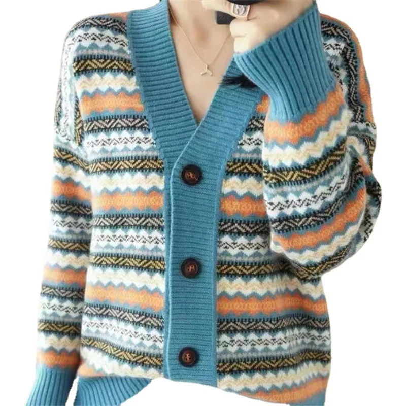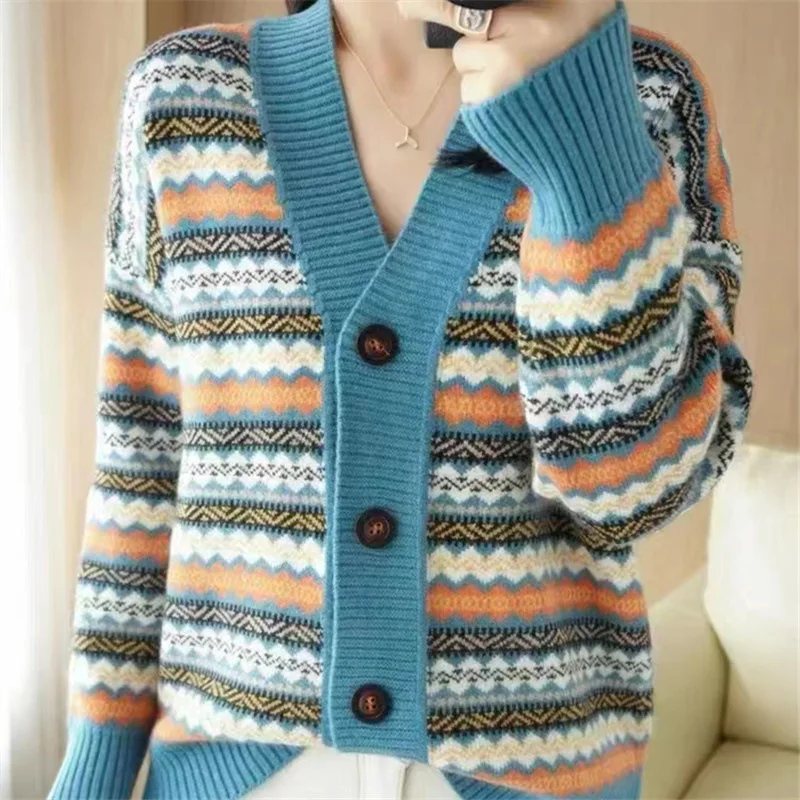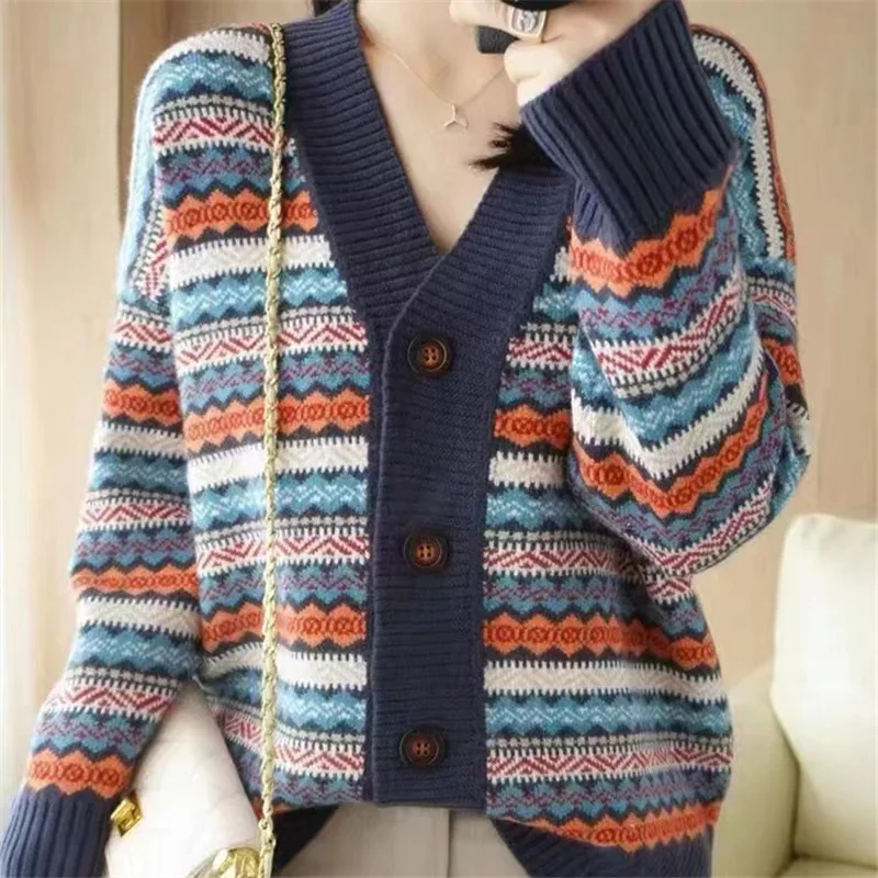 Be the first to review “Women Print Button Cardigan Sweaters V Neck Splice Knit Thick Jumpers Casual Vintage Long Sleeve Elegant Lady Autumn Winter 2025” Cancel reply