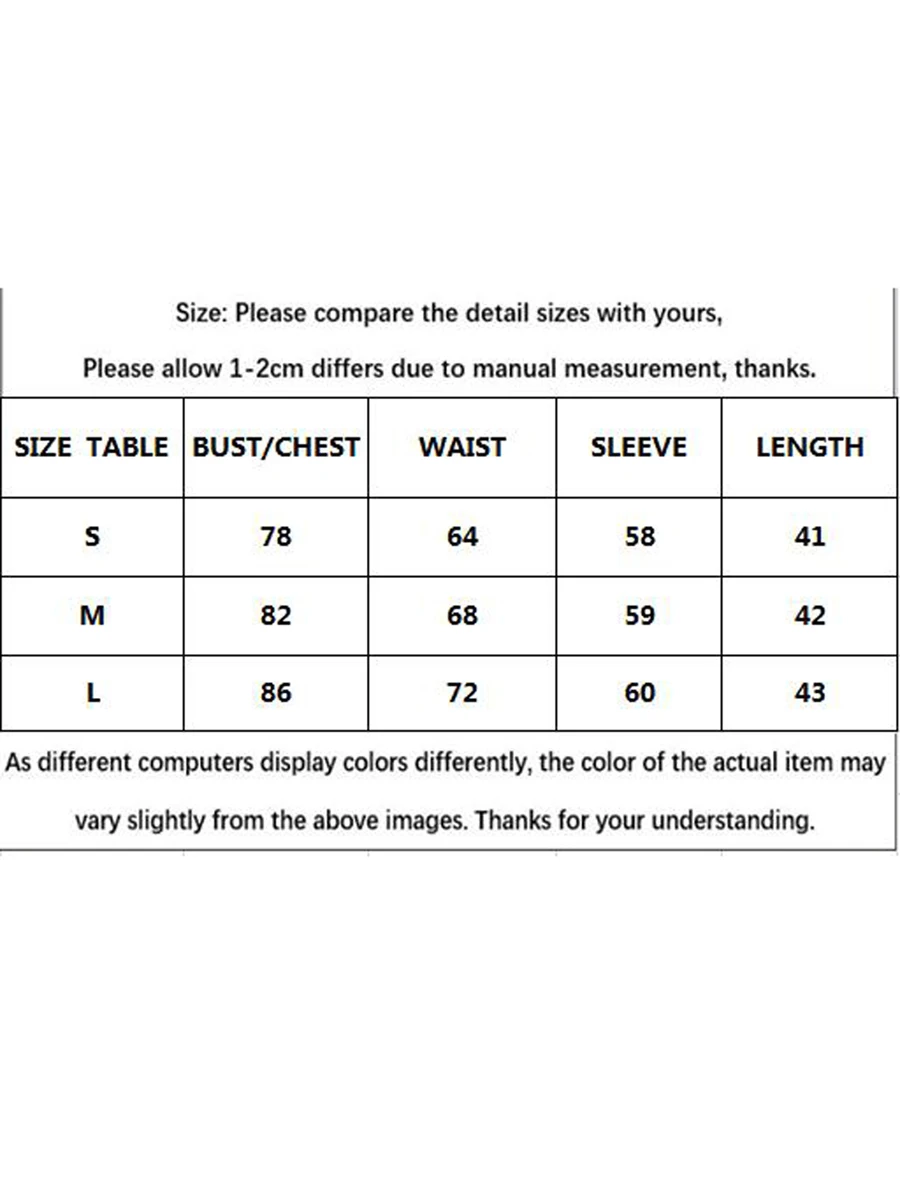 2. Please check the measurement chart carefully before you buy the item.(1 inch=2.54cm)